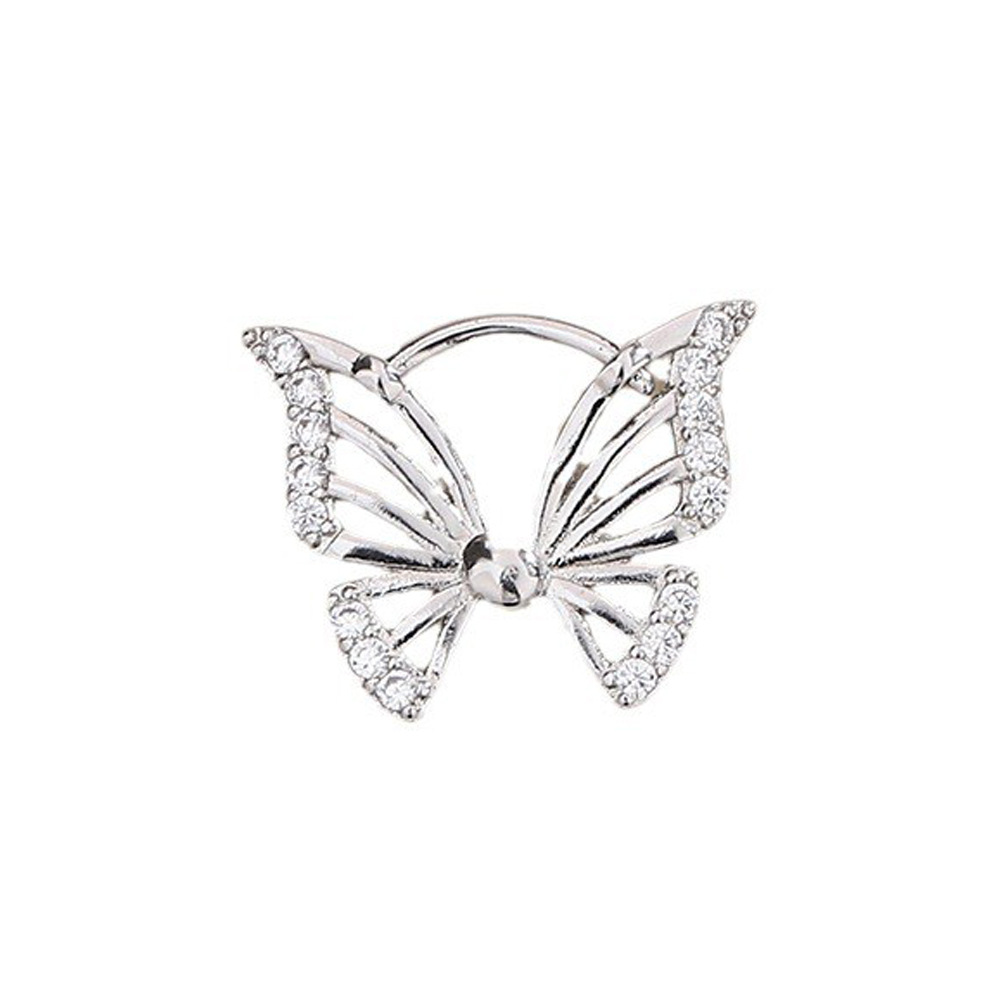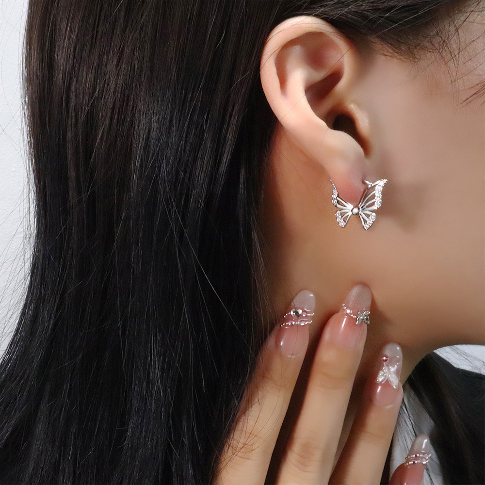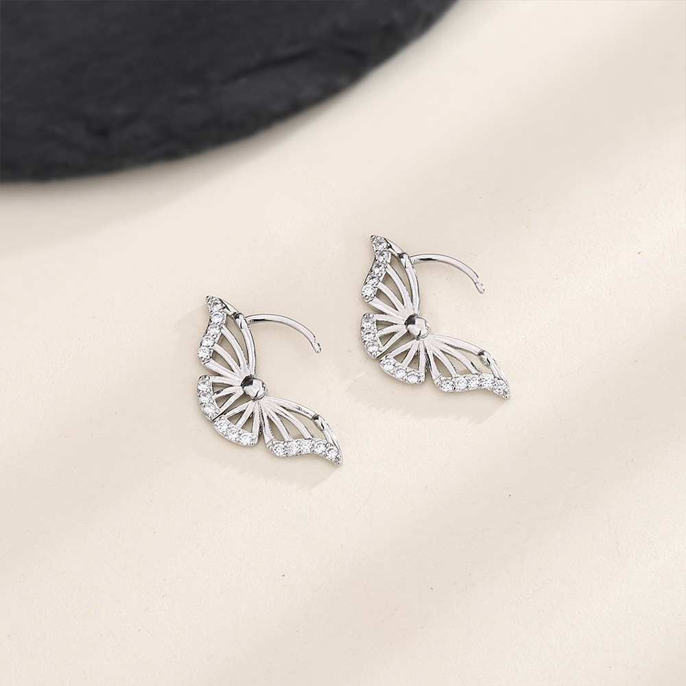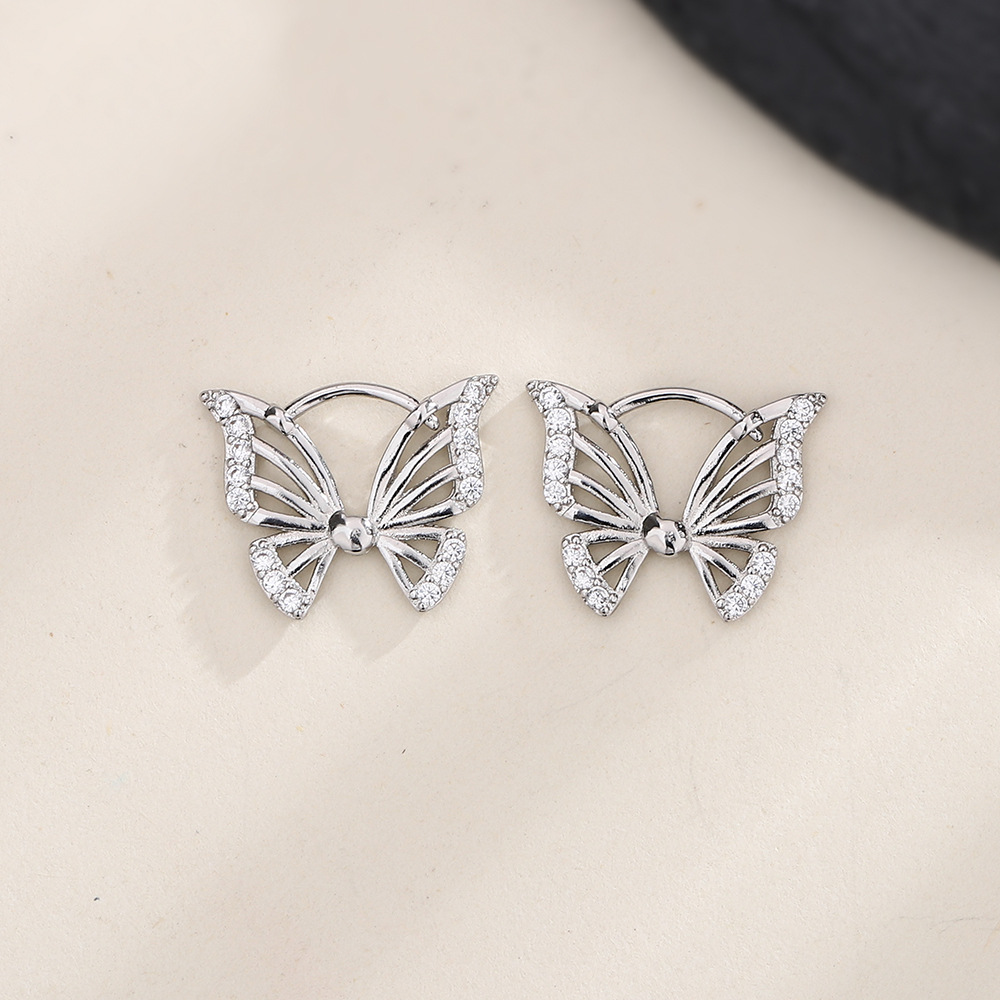 Boucles d'oreilles en laiton zircon cubique pavent, papillon, Placage, pavé de micro zircon & pour femme, couleur platine, 25mm, Vendu par PC