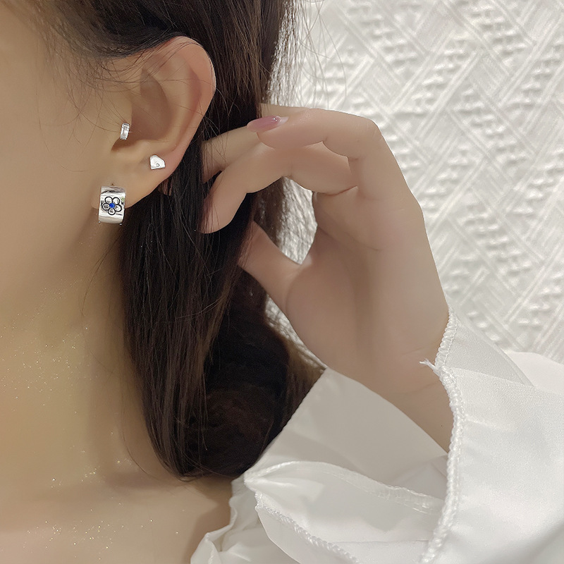 Boucles d'oreilles en laiton zircon cubique pavent, Pétales, Placage, pavé de micro zircon & pour femme & émail, couleur platine, 7x13mm, Vendu par paire