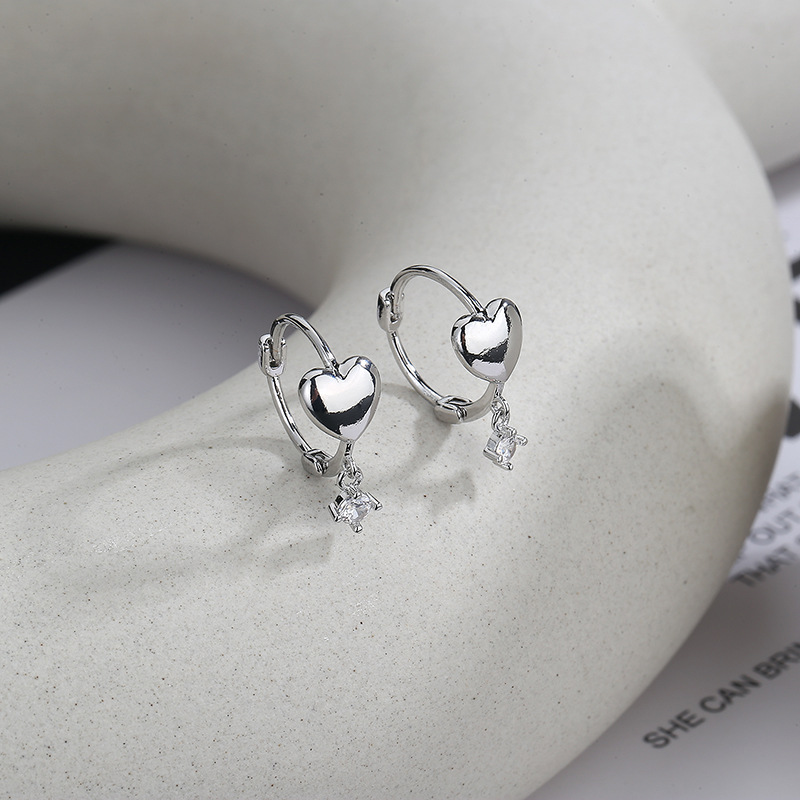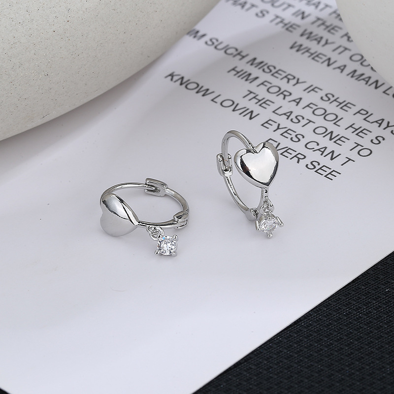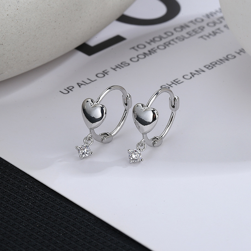 Boucles d'oreilles en laiton zircon cubique pavent, Placage, pavé de micro zircon & pour femme, couleur platine, 10x15mm, Vendu par paire