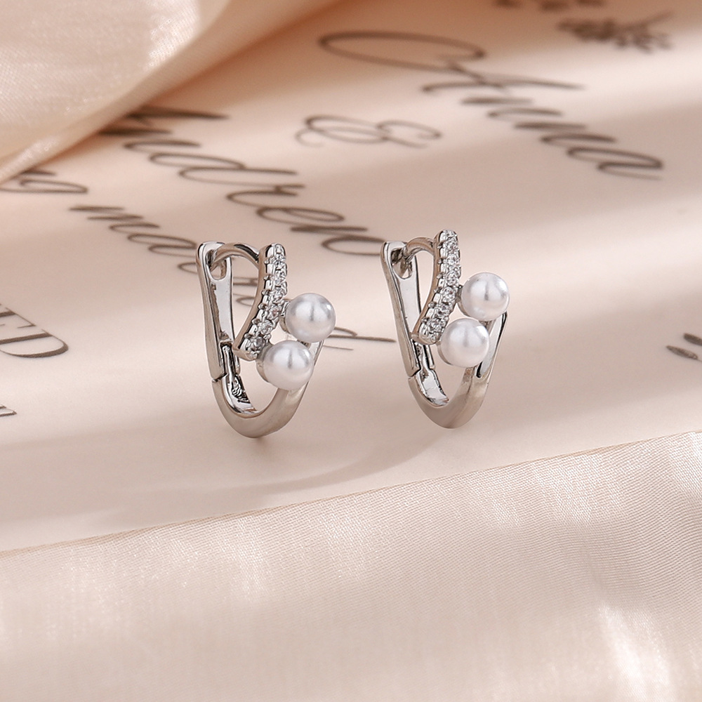 Boucles d'oreilles en laiton zircon cubique pavent, avec perle de plastique, Placage, pavé de micro zircon & pour femme, plus de couleurs à choisir, 13x13mm, Vendu par paire