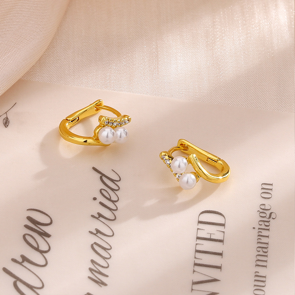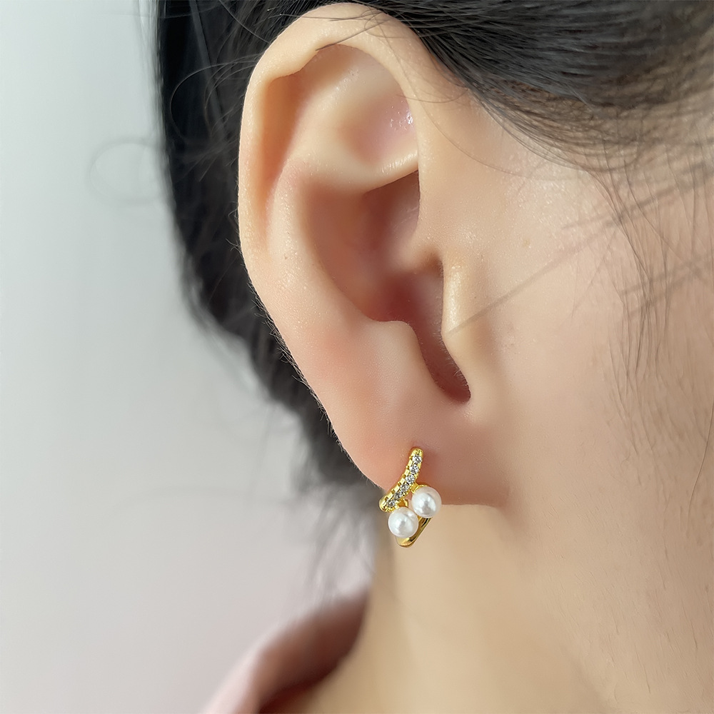 Boucles d'oreilles en laiton zircon cubique pavent, Plaqué de couleur d'or rose, pavé de micro zircon Vendu par paire