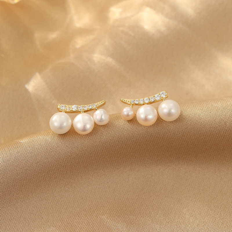 Boucles d'oreilles en laiton zircon cubique pavent, avec Plastique ABS perle, Placage de couleur d'or, bijoux de mode & pavé de micro zircon, doré, 8x14mm, Vendu par paire