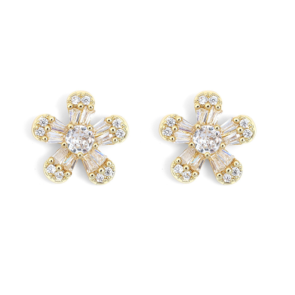 Boucles d'oreilles en laiton zircon cubique pavent, fleur, Plaqué d'or rose, pavé de micro zircon & pour femme Vendu par paire