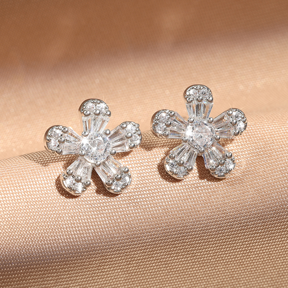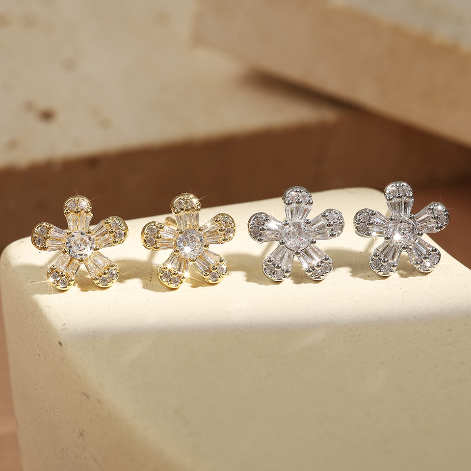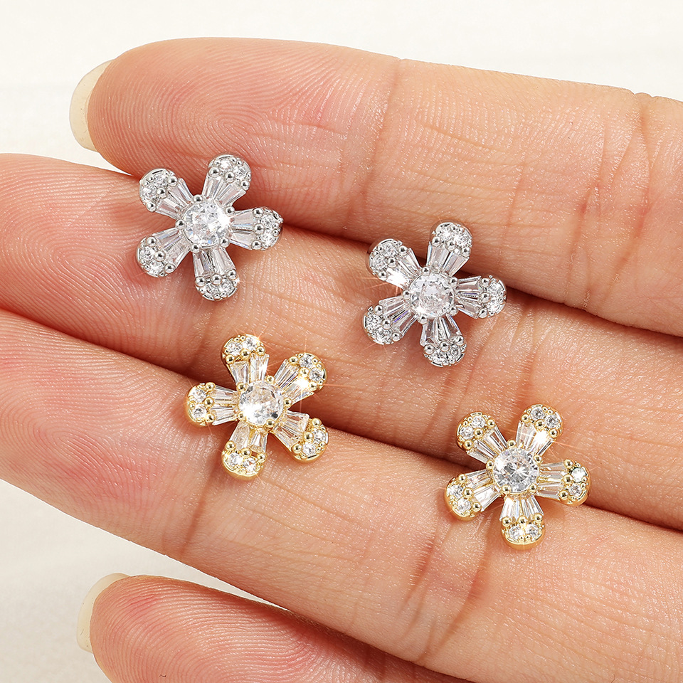 Boucles d'oreilles en laiton zircon cubique pavent, fleur, Placage, pavé de micro zircon & pour femme, plus de couleurs à choisir, 10mm, Vendu par paire