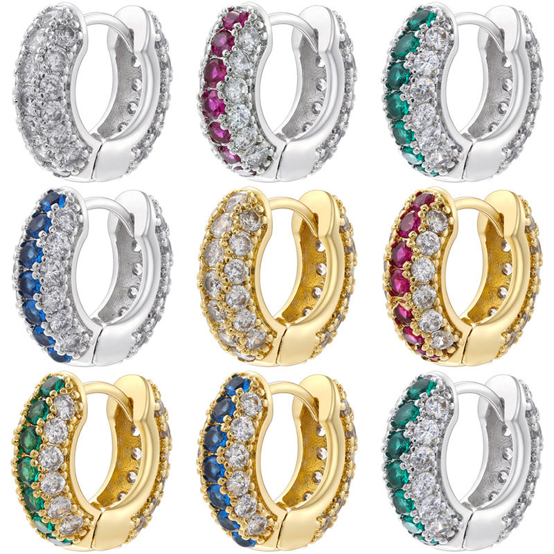 Boucles d'oreilles en laiton zircon cubique pavent, cadre, Placage, pavé de micro zircon & pour femme, plus de couleurs à choisir, protéger l'environnement, sans nickel, plomb et cadmium, 11mm, Vendu par paire