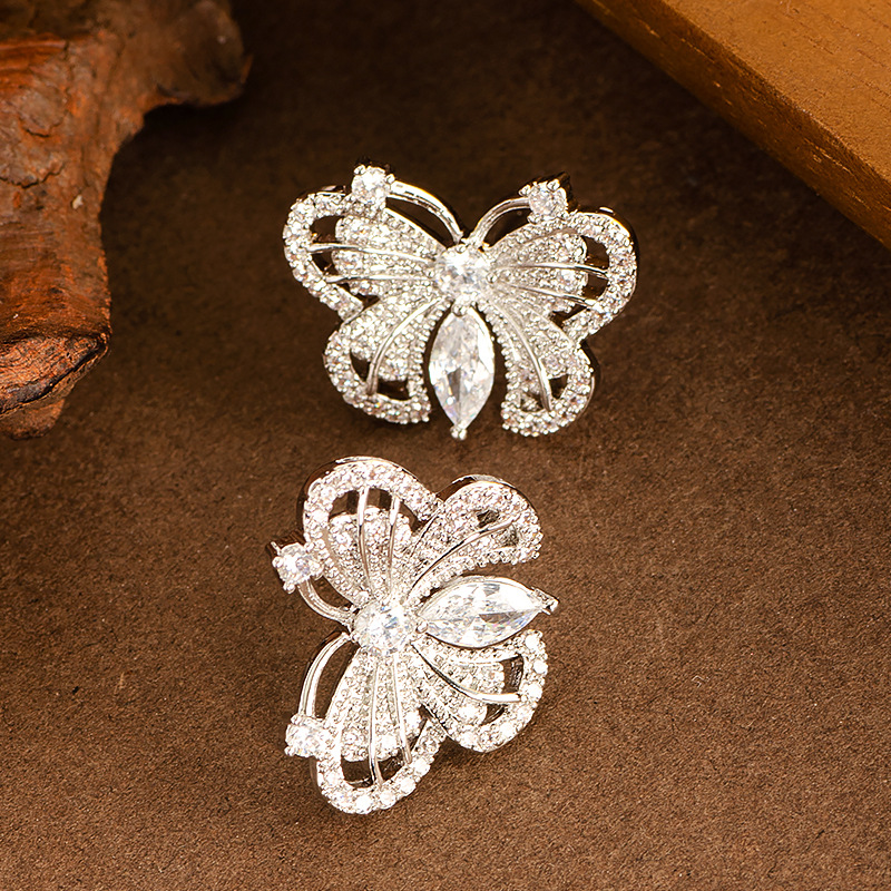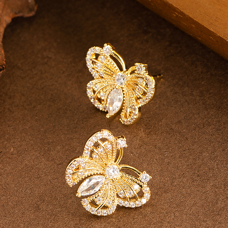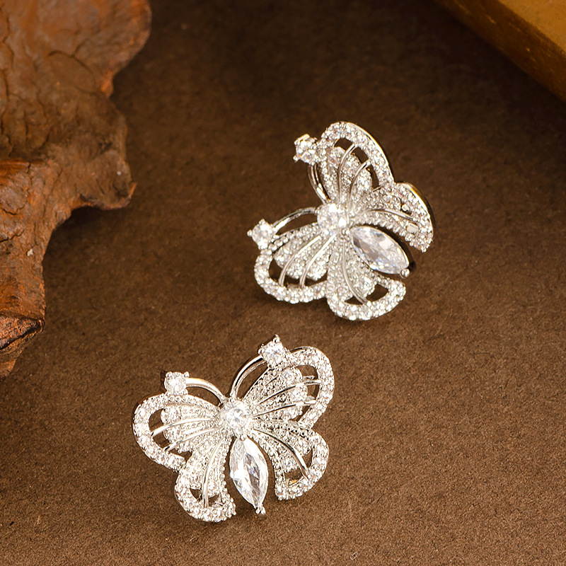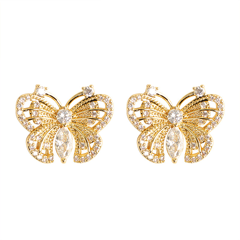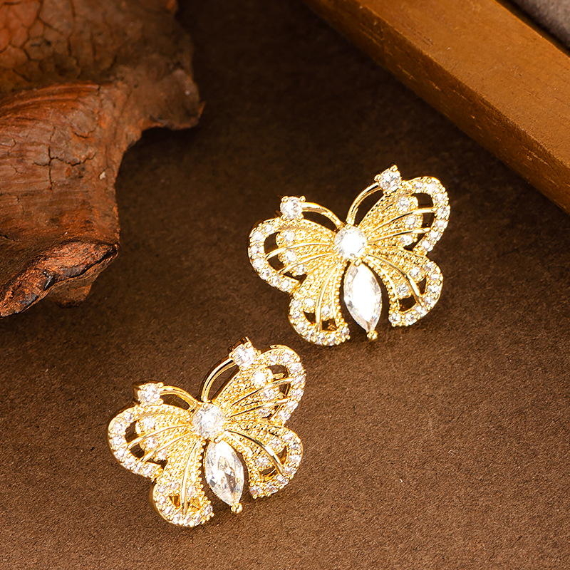Boucles d'oreilles en laiton zircon cubique pavent, papillon, Placage, bijoux de mode & pavé de micro zircon, plus de couleurs à choisir, 20x16mm, Vendu par paire