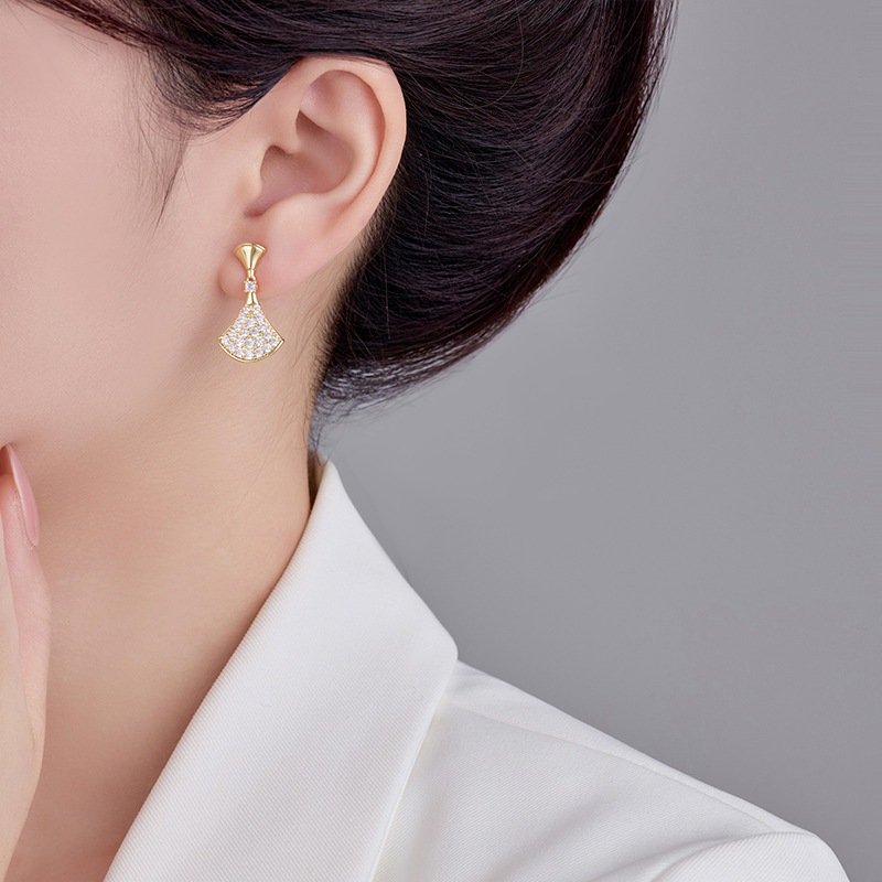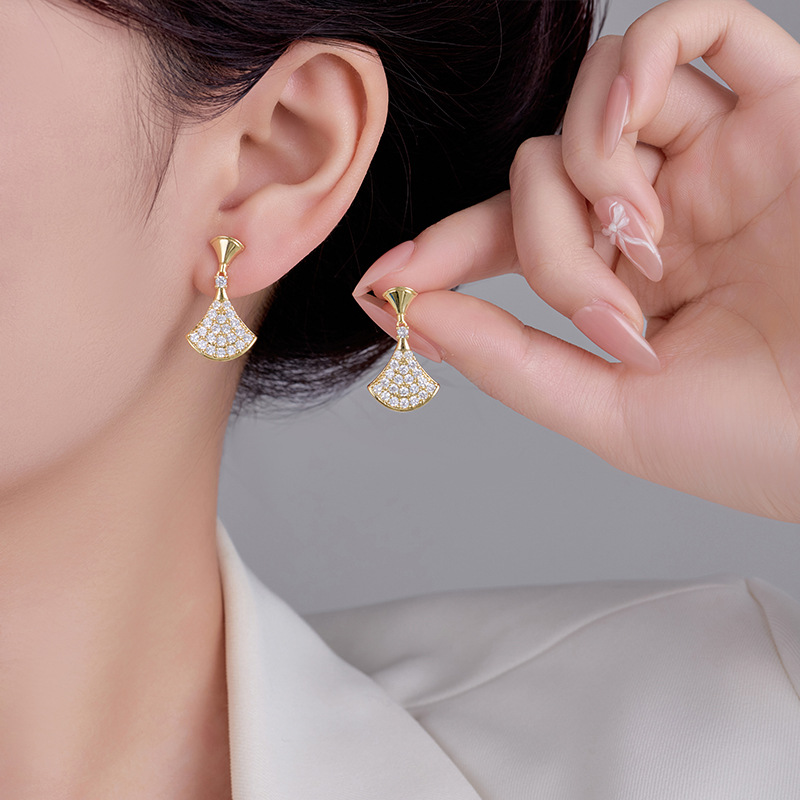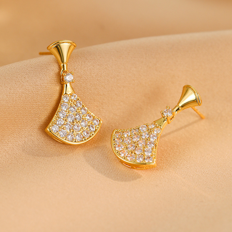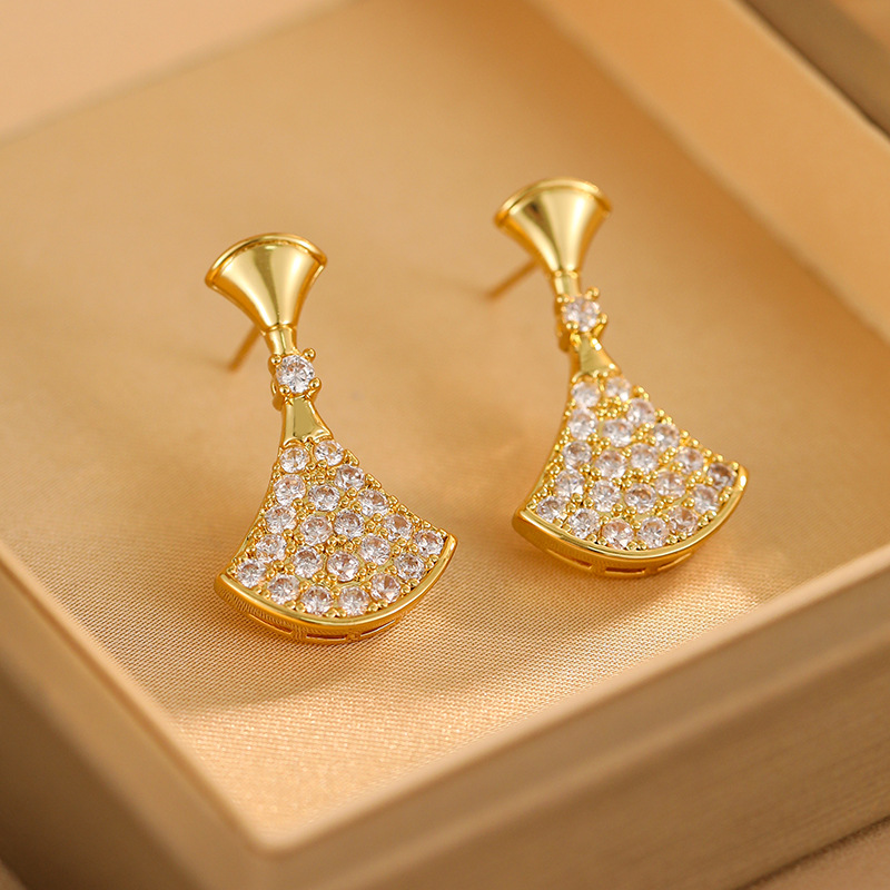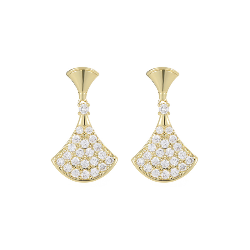 Boucles d'oreilles en laiton zircon cubique pavent, Plaqué de couleur d'or rose, pavé de micro zircon Vendu par paire