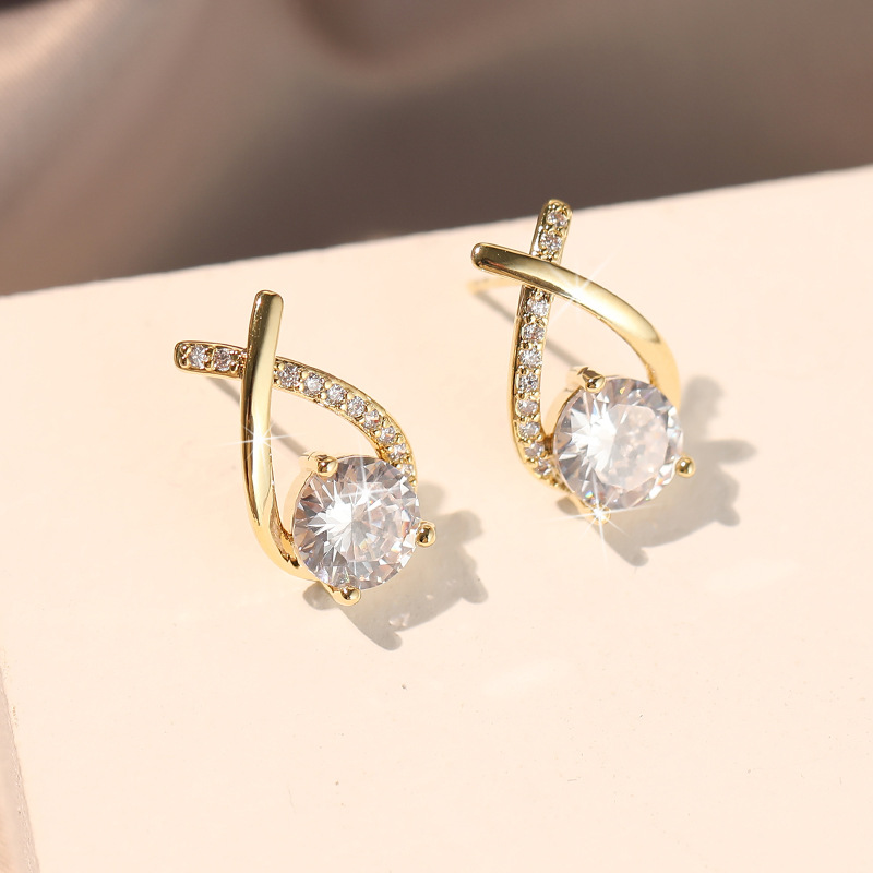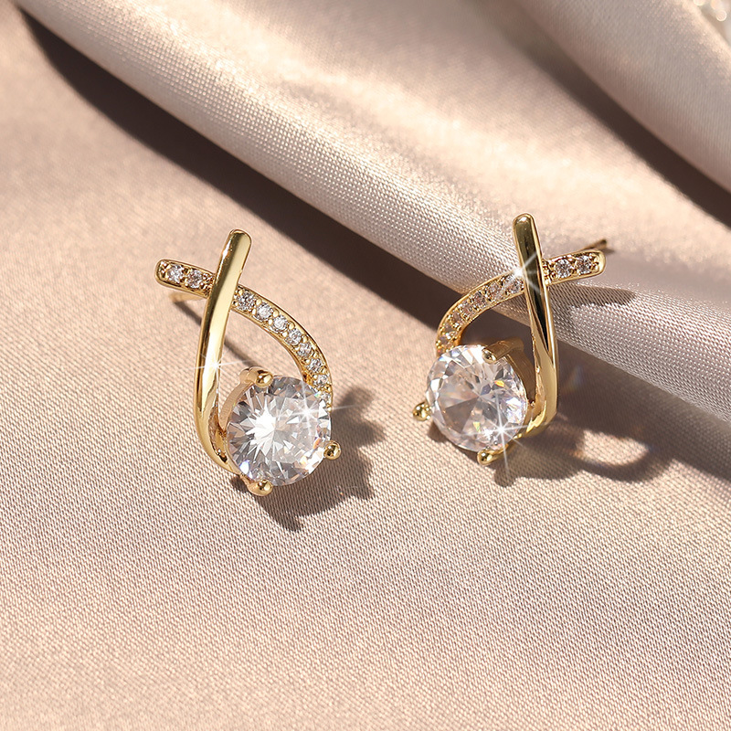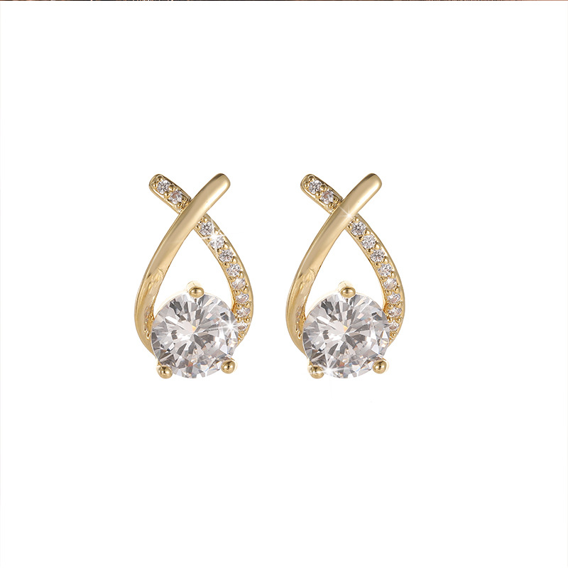 Boucles d'oreilles en laiton zircon cubique pavent, Plaqué de couleur d'or rose, pavé de micro zircon Vendu par paire