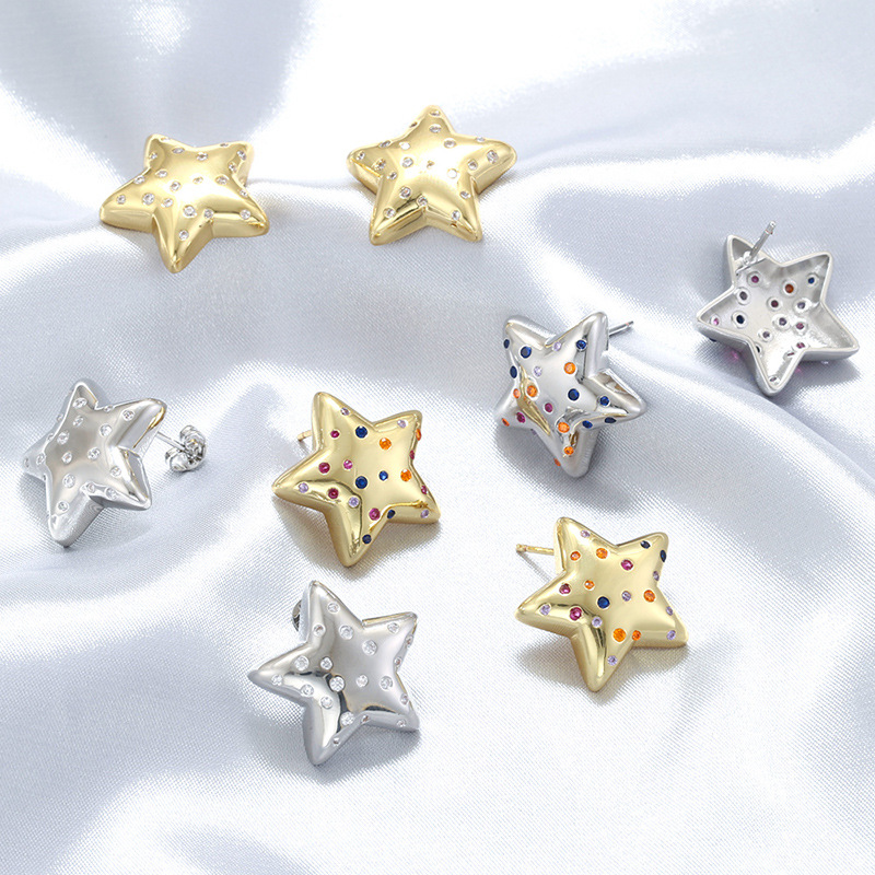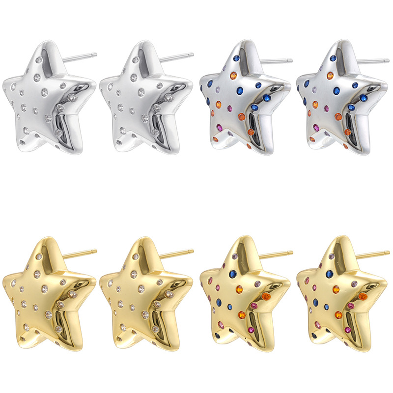 Boucles d'oreilles en laiton zircon cubique pavent, Huit Étoile, Placage, pavé de micro zircon, plus de couleurs à choisir Vendu par paire