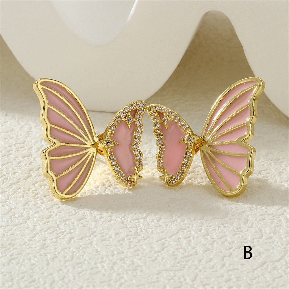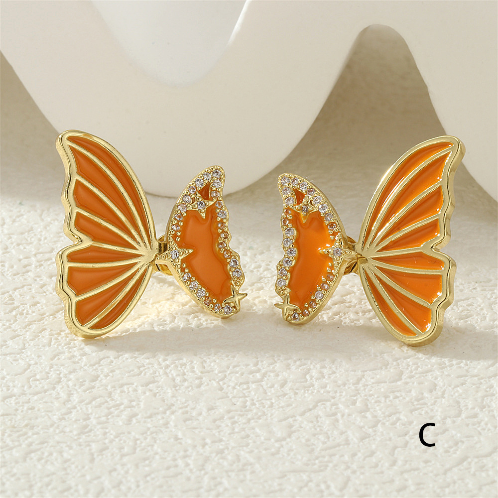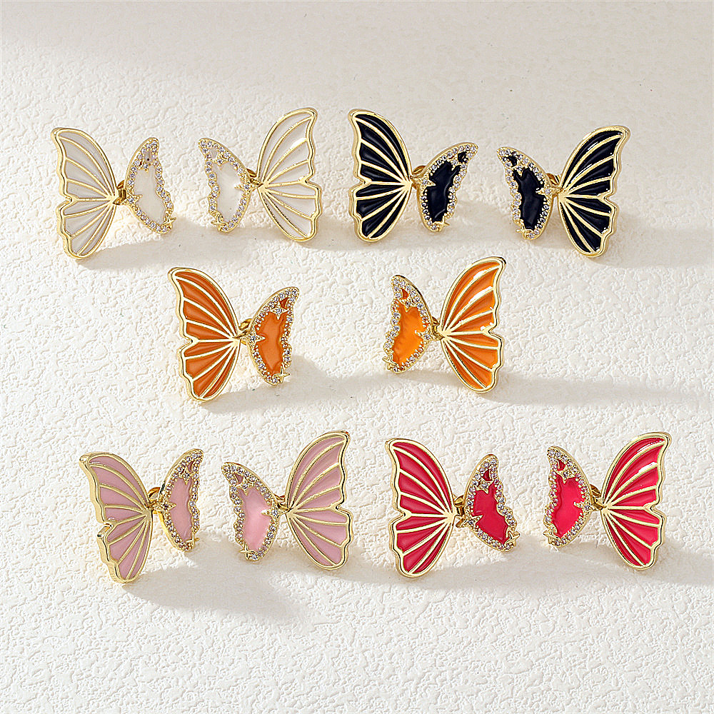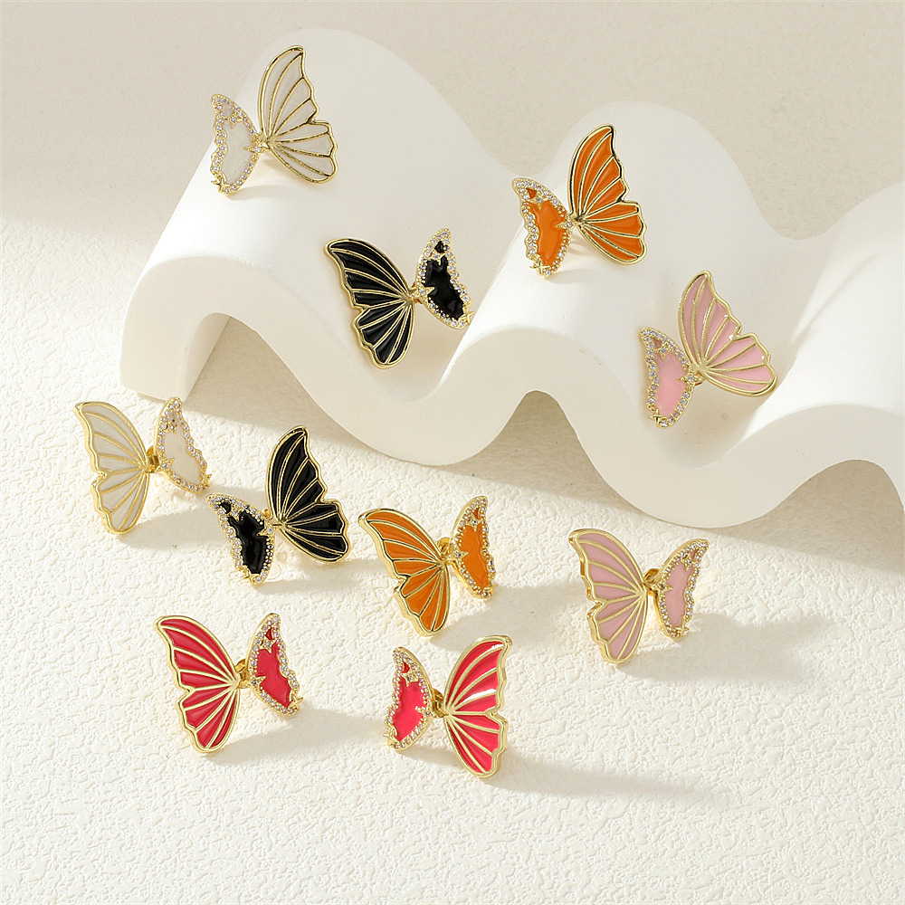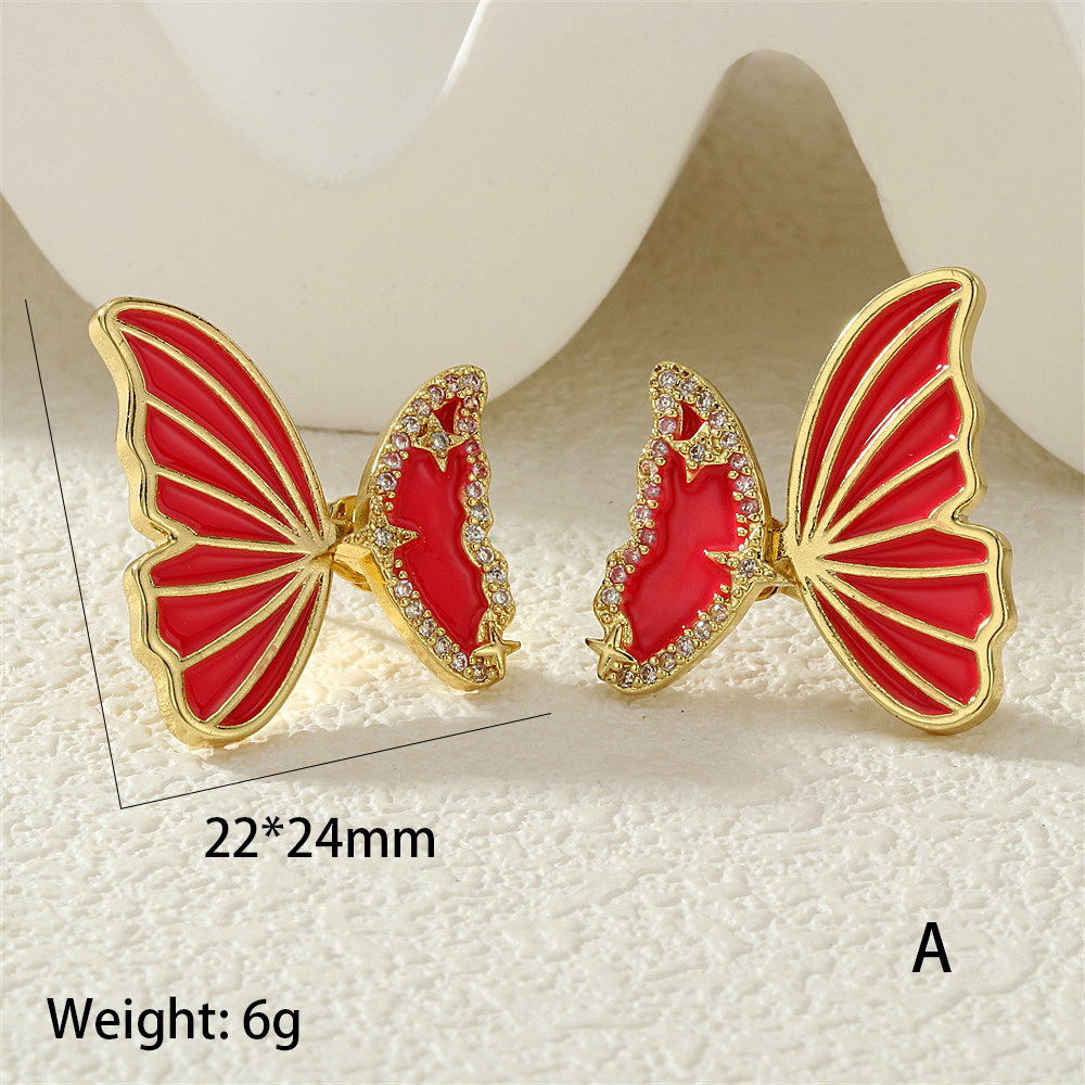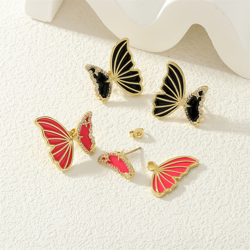 Boucles d'oreilles en laiton zircon cubique pavent, papillon, Placage de couleur d'or, bijoux de mode & pavé de micro zircon & pour femme & émail, plus de couleurs à choisir, 22x24mm, Vendu par paire