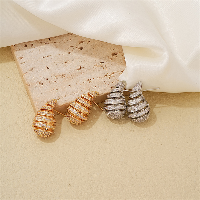 Boucles d'oreilles en laiton zircon cubique pavent, Plaqué de couleur d'or rose, pavé de micro zircon Vendu par paire