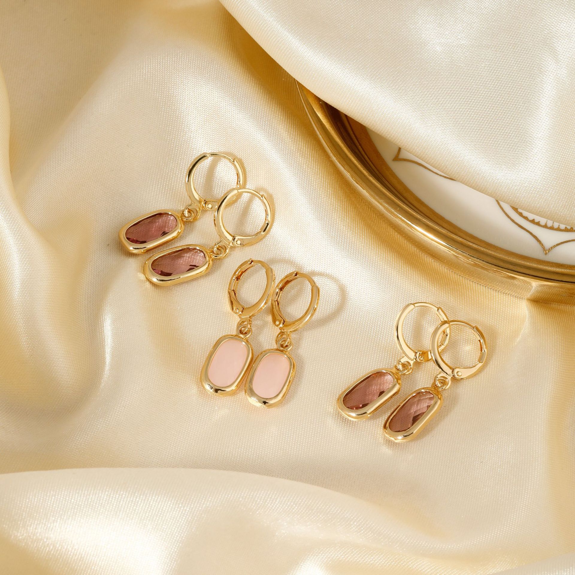 Boucles d'oreilles en laiton zircon cubique pavent, Plaqué de couleur d'or rose, pavé de micro zircon Vendu par paire