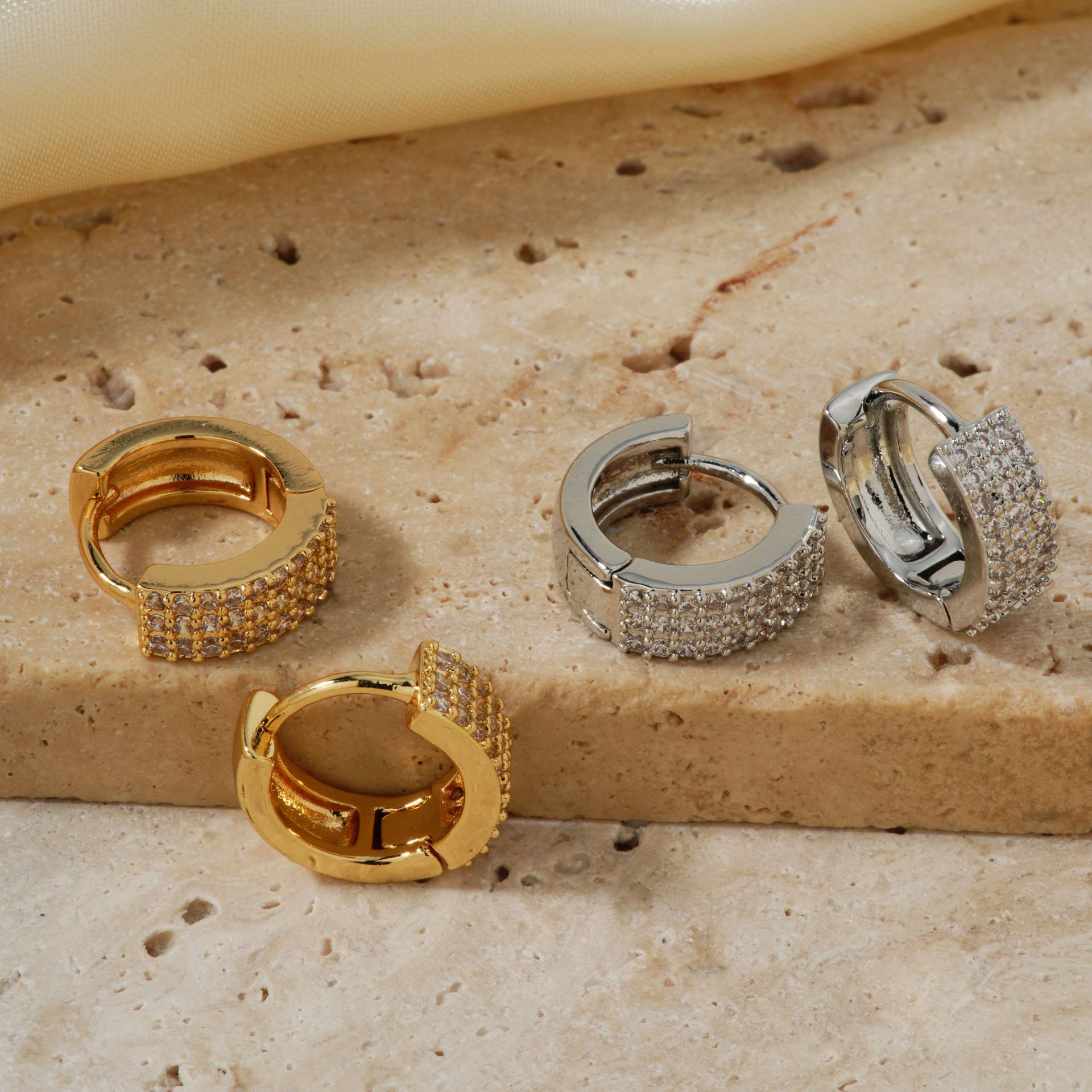 Boucles d'oreilles en laiton zircon cubique pavent, Plaqué de couleur d'or rose, pavé de micro zircon Vendu par paire
