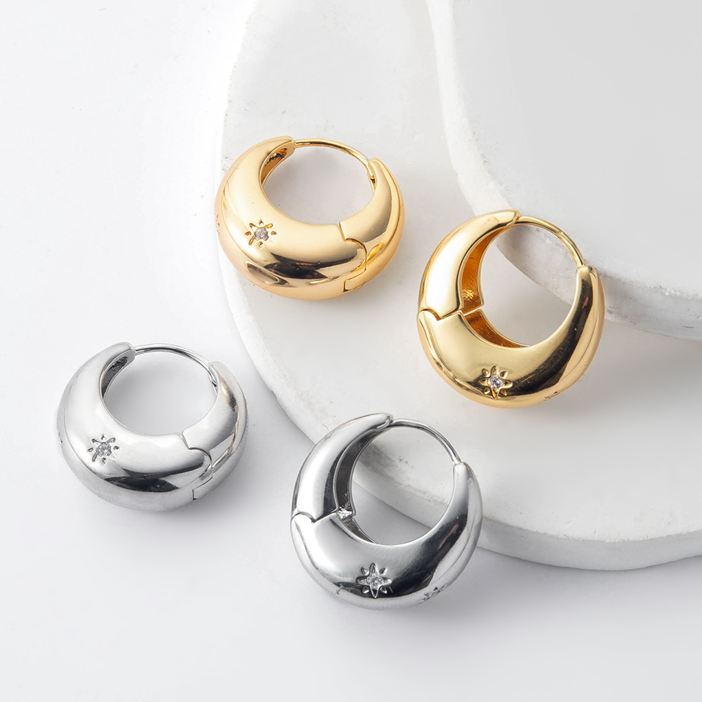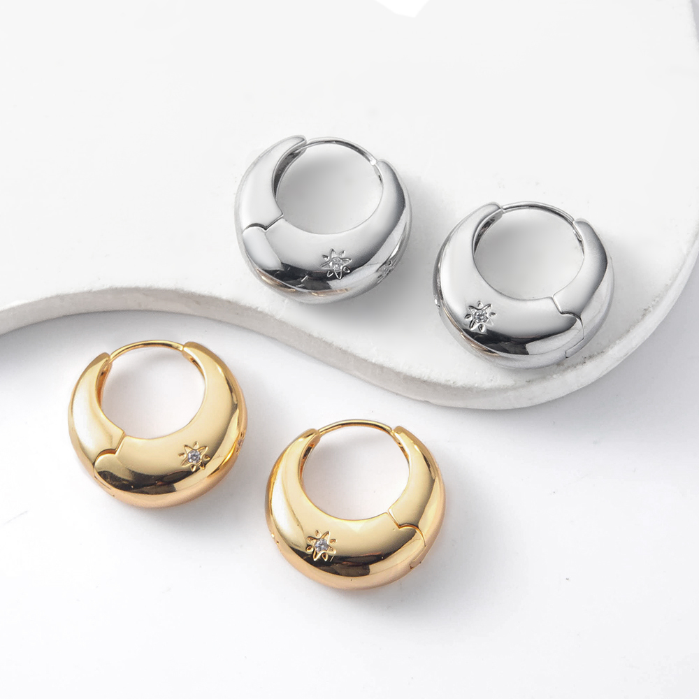 Boucles d'oreilles en laiton zircon cubique pavent, Huit Étoile, Placage, pavé de micro zircon, plus de couleurs à choisir Vendu par paire