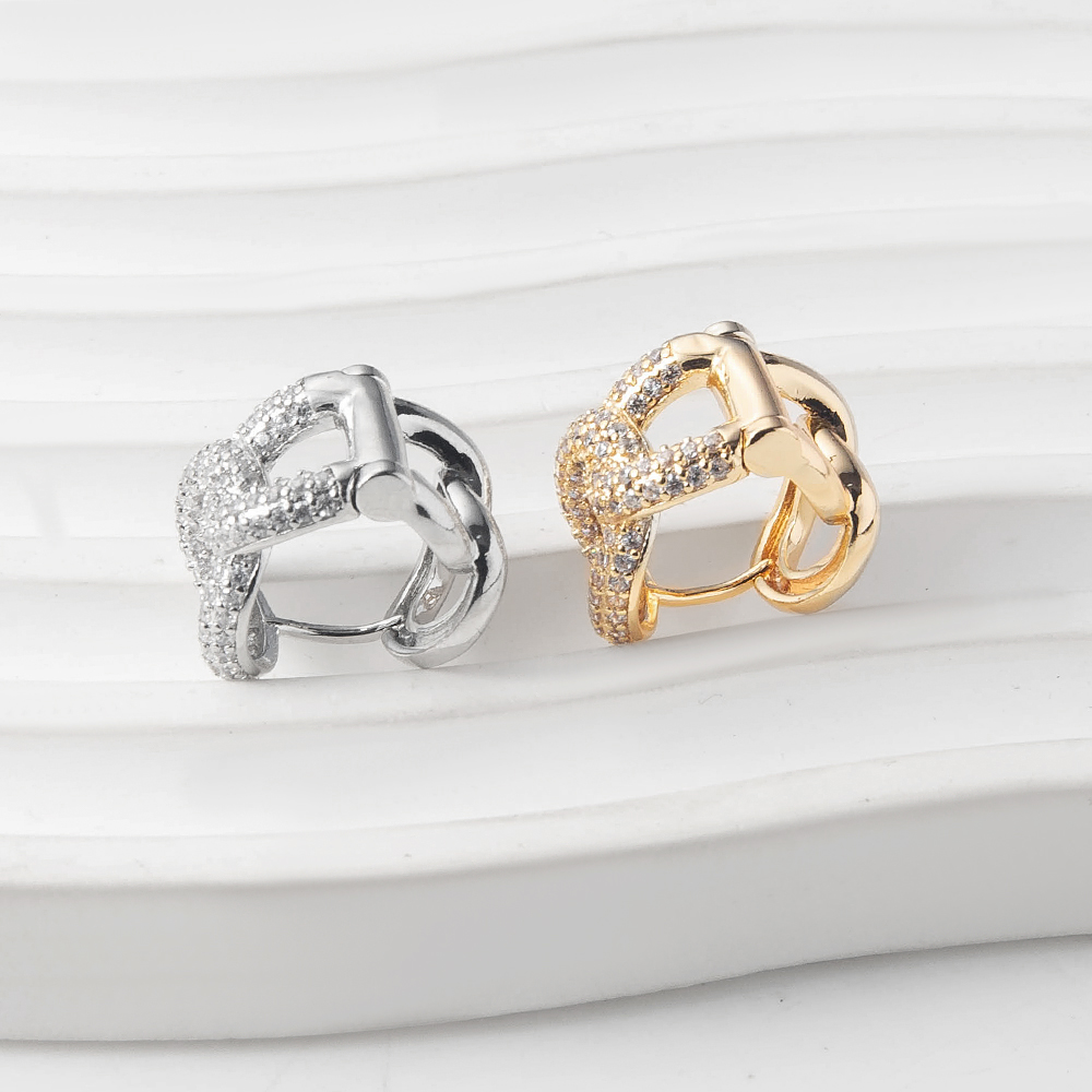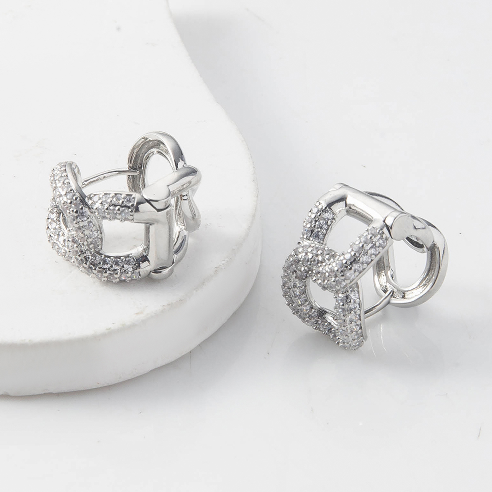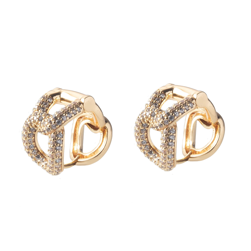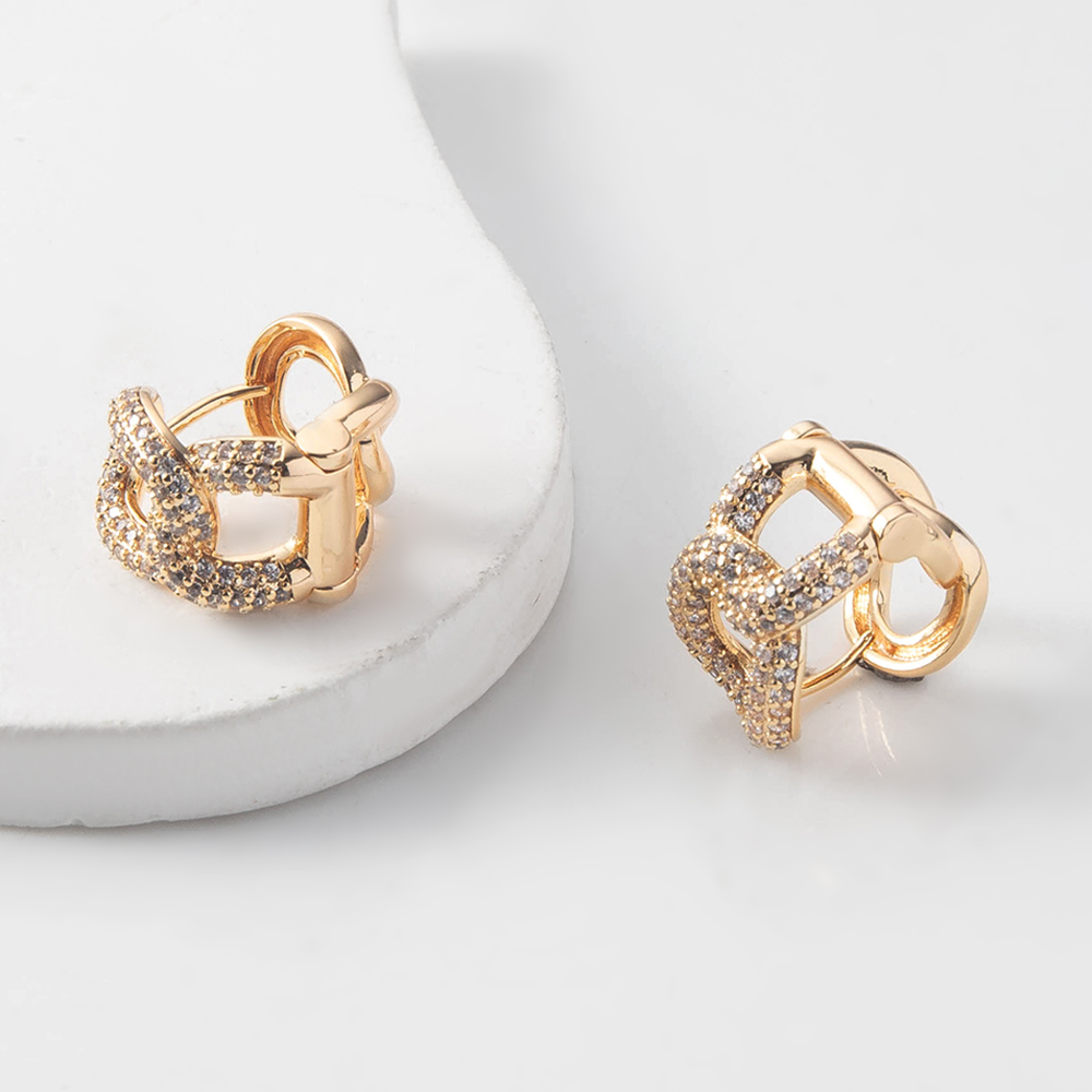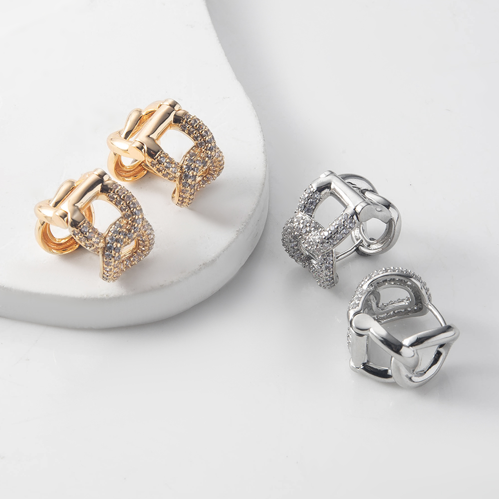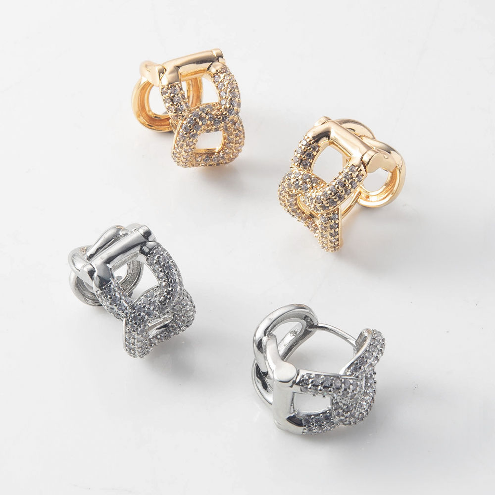 Boucles d'oreilles en laiton zircon cubique pavent, Plaqué de couleur d'or rose, pavé de micro zircon Vendu par paire