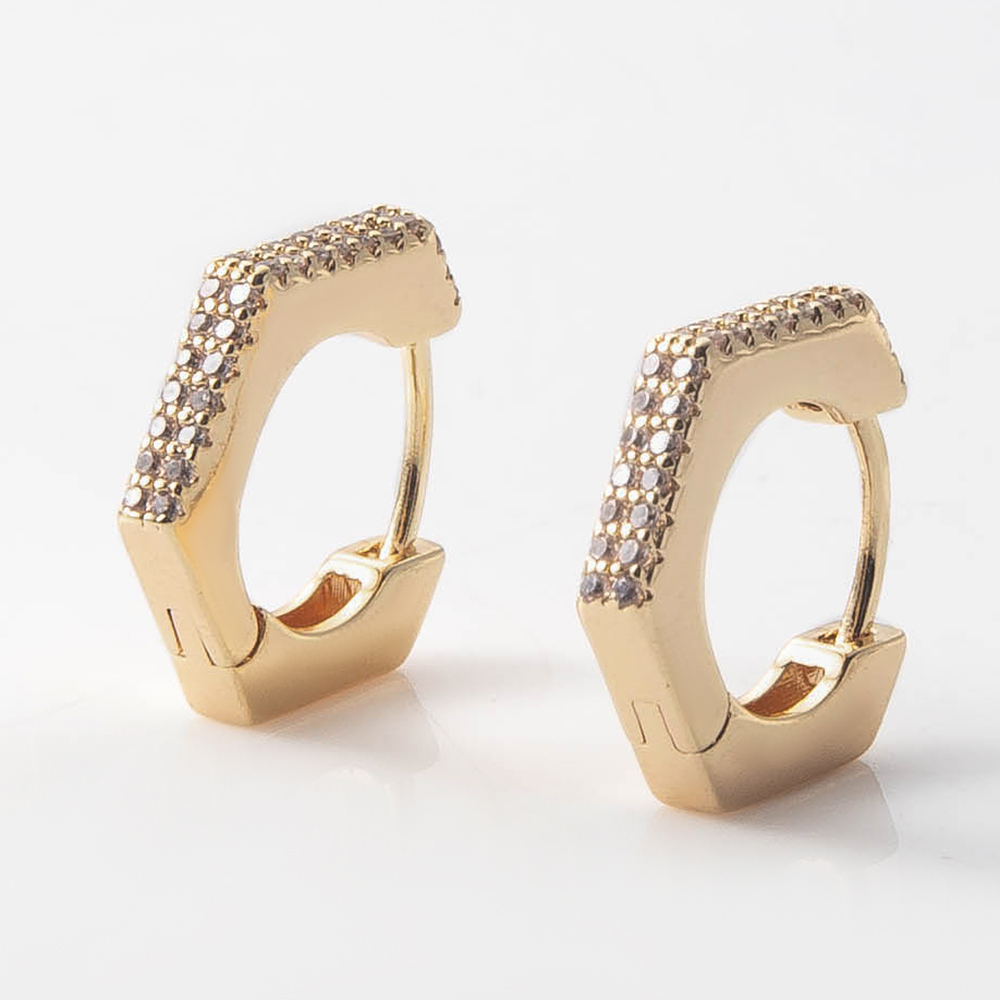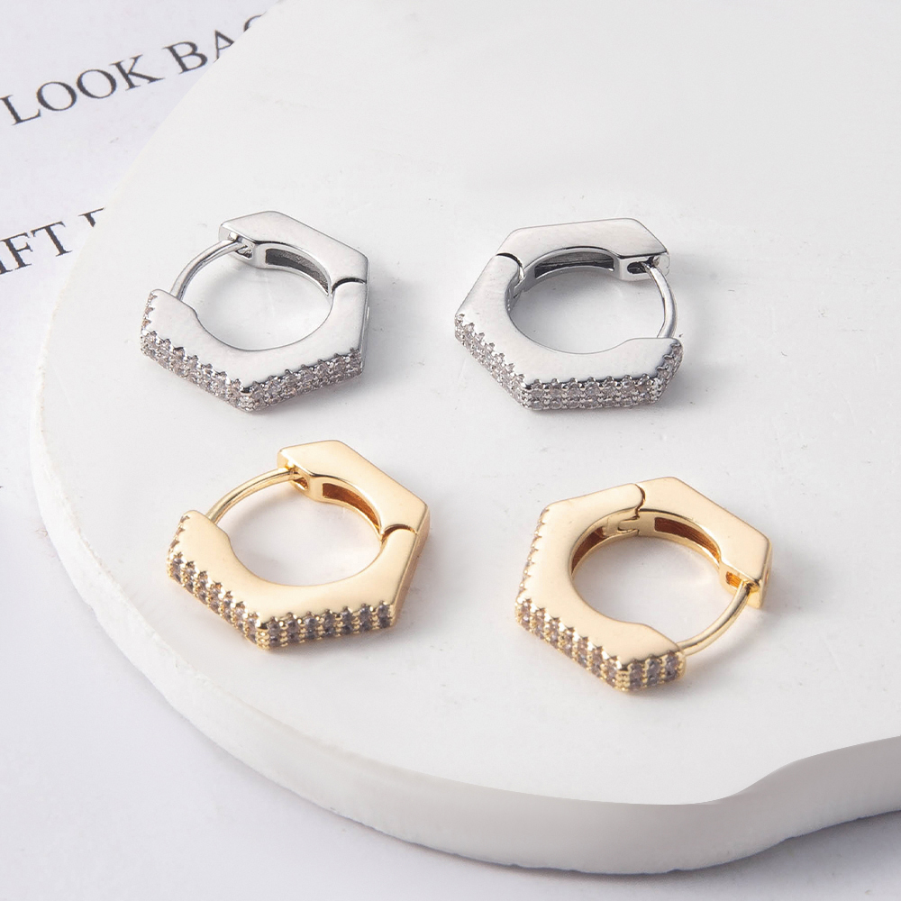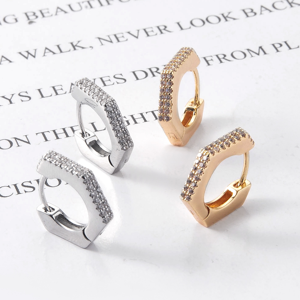 Boucles d'oreilles en laiton zircon cubique pavent, Plaqué de couleur d'or rose, pavé de micro zircon Vendu par paire