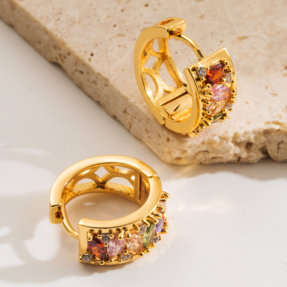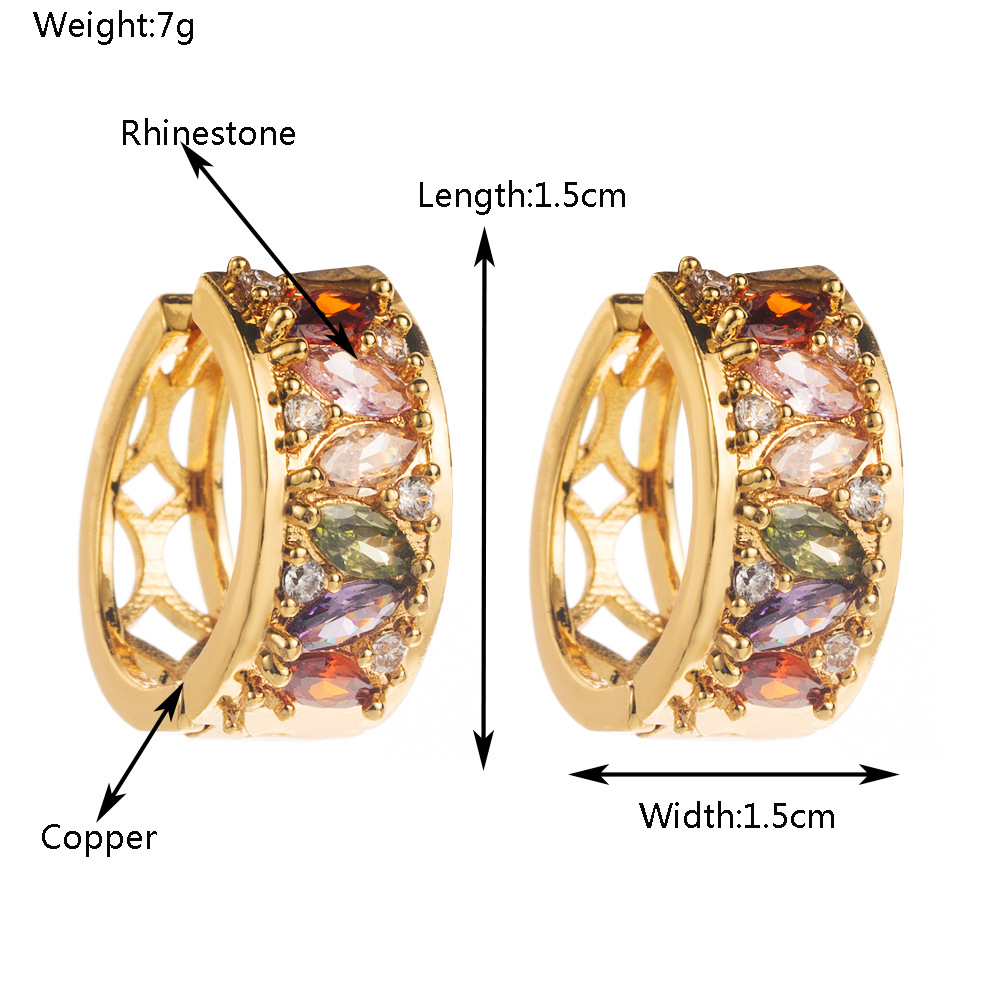 Boucles d'oreilles en laiton zircon cubique pavent, Plaqué de couleur d'or rose, pavé de micro zircon Vendu par paire