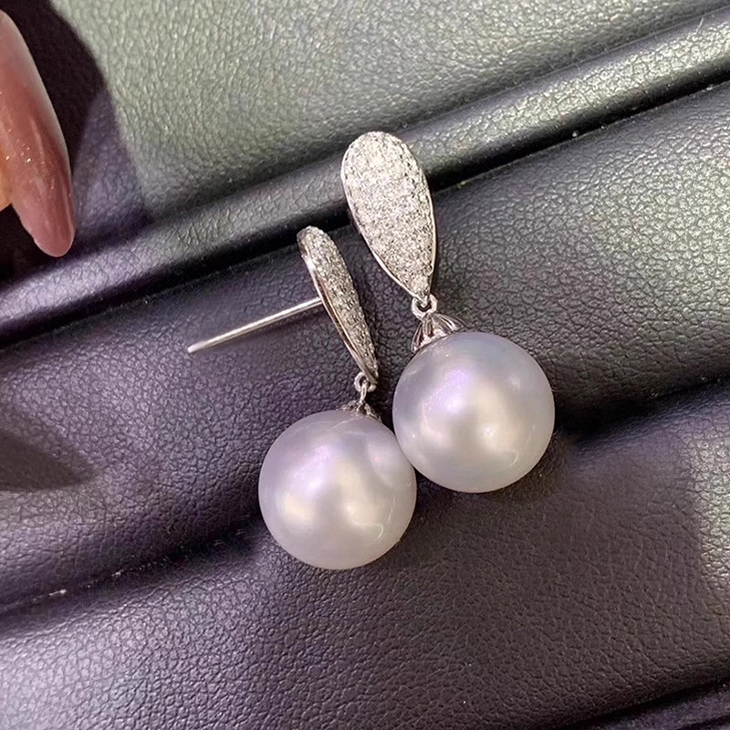 Boucles d'oreilles en laiton zircon cubique pavent, avec perle de plastique, Placage, bijoux de mode & pavé de micro zircon & pour femme, Vendu par paire