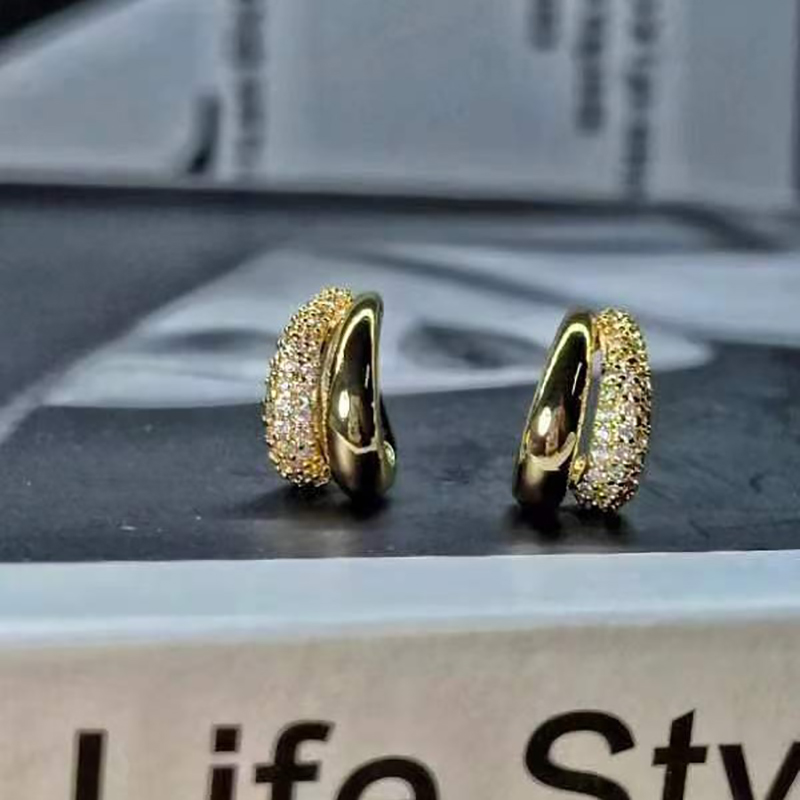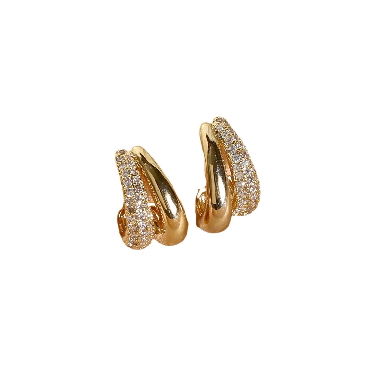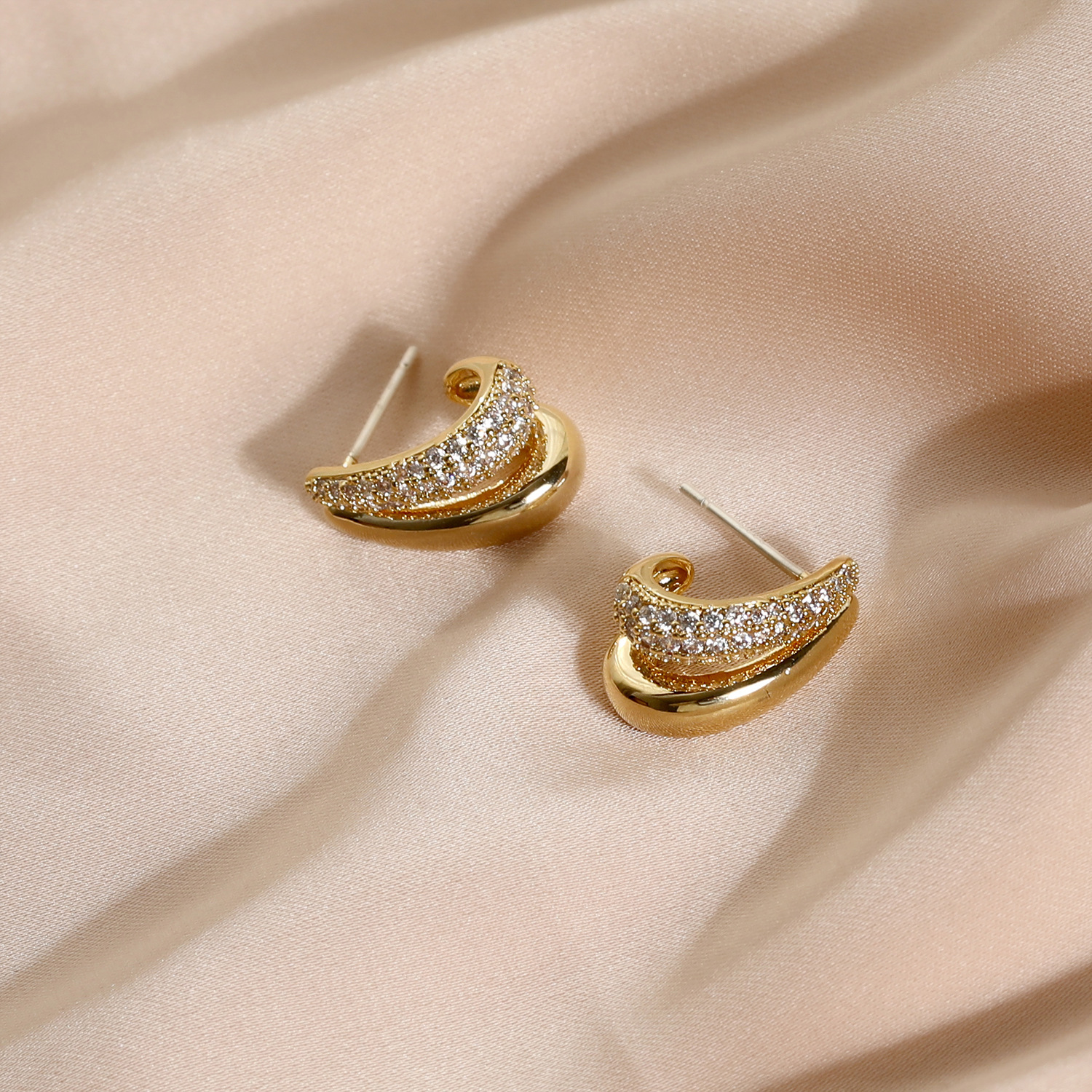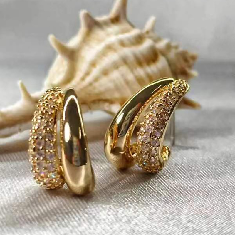 Boucles d'oreilles en laiton zircon cubique pavent, Plaqué de couleur d'or rose, pavé de micro zircon Vendu par paire