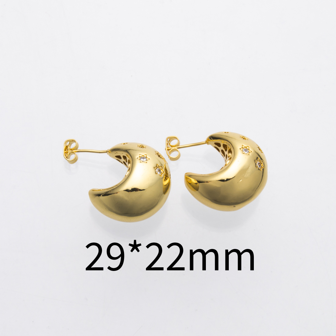 Boucles d'oreilles en laiton zircon cubique pavent, Huit Étoile, Placage, pavé de micro zircon, plus de couleurs à choisir Vendu par paire