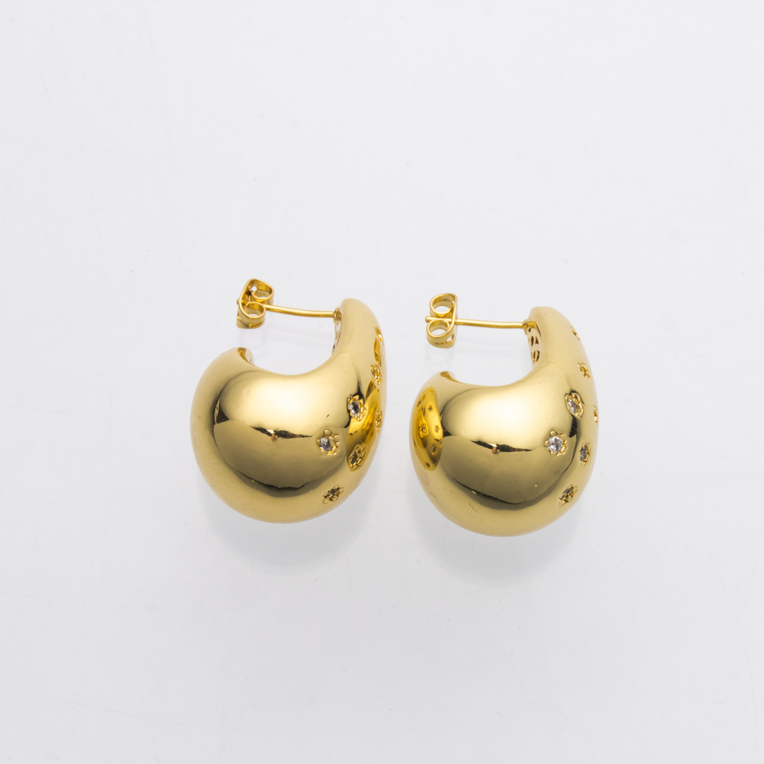Boucles d'oreilles en laiton zircon cubique pavent, Plaqué de couleur d'or rose, pavé de micro zircon Vendu par paire