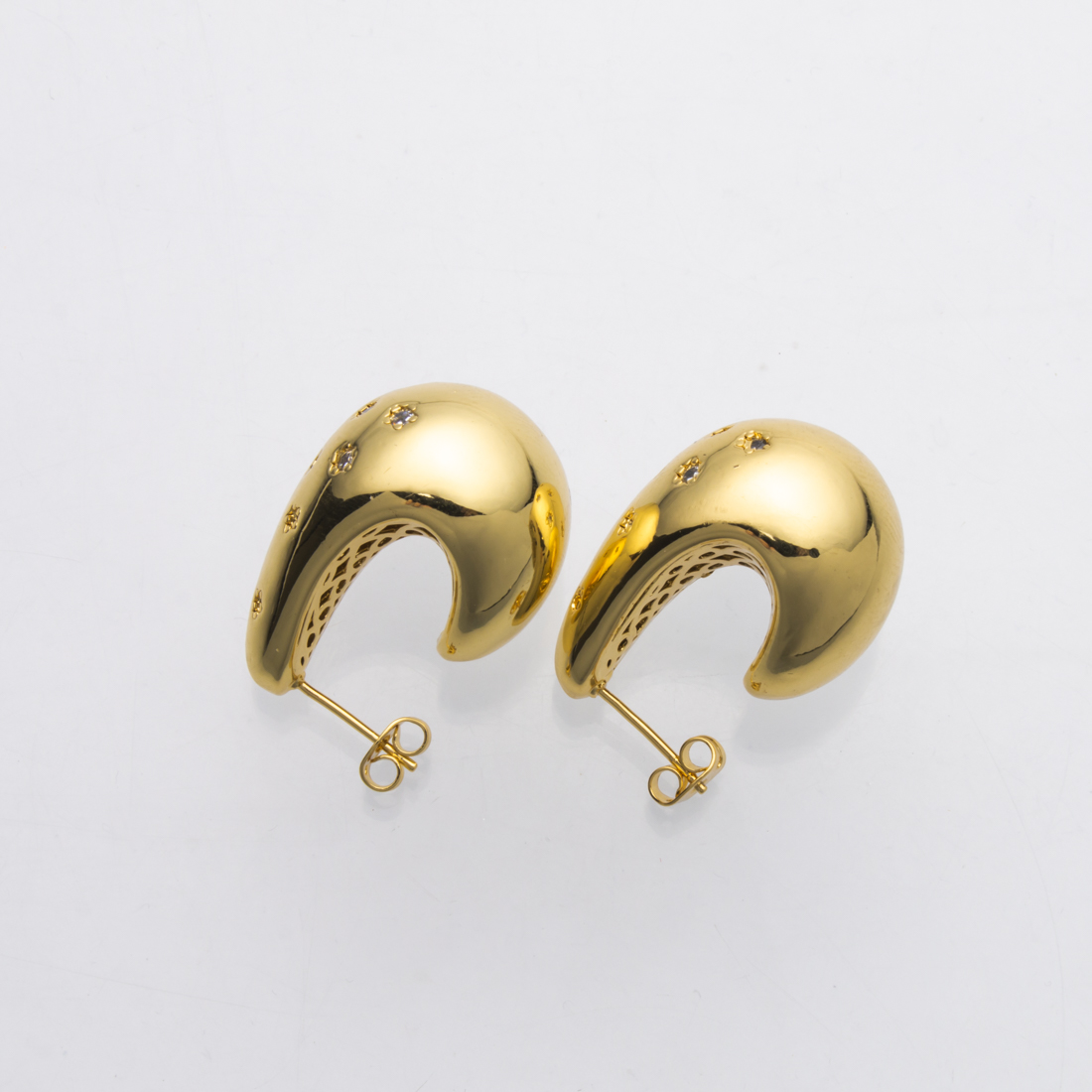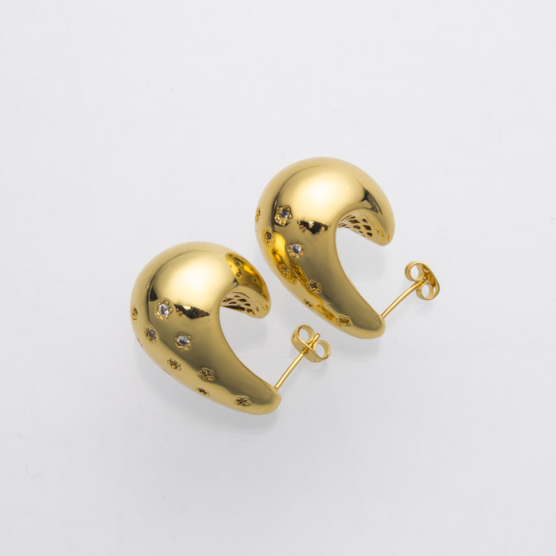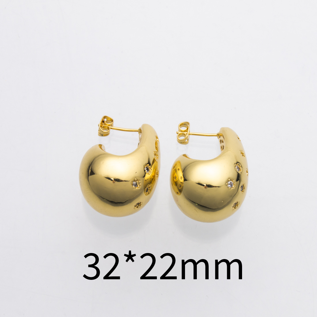 Boucles d'oreilles en laiton zircon cubique pavent, Placage de couleur d'or, bijoux de mode & pavé de micro zircon & pour femme, 32x22x20mm, Vendu par paire