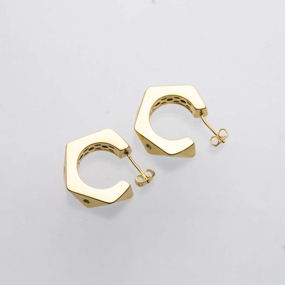 Boucles d'oreilles en laiton zircon cubique pavent, Placage de couleur d'or, bijoux de mode & pavé de micro zircon & pour femme, 30x24x8mm, Vendu par paire