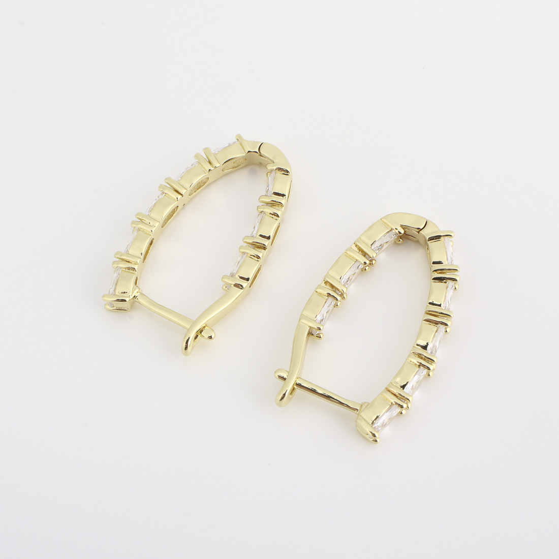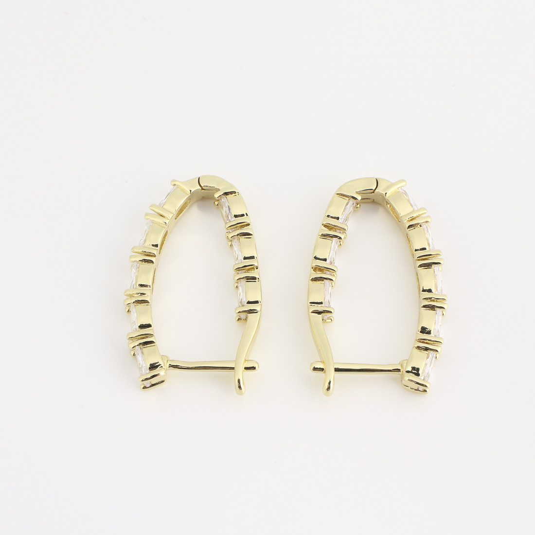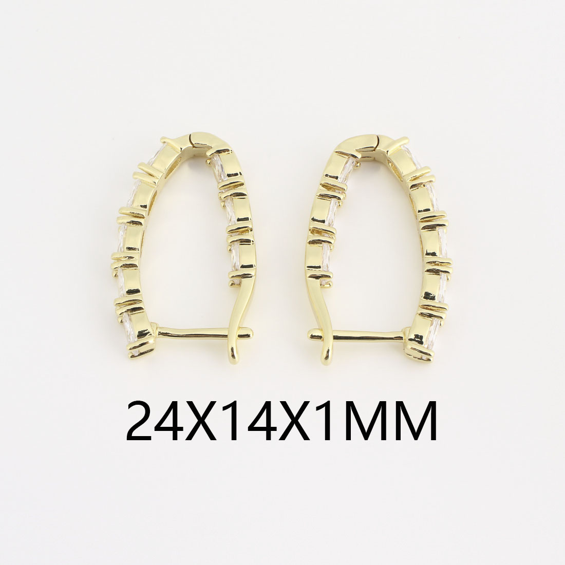 Boucles d'oreilles en laiton zircon cubique pavent, bijoux de mode & pavé de micro zircon & pour femme, doré, 24x14x1mm, Vendu par paire