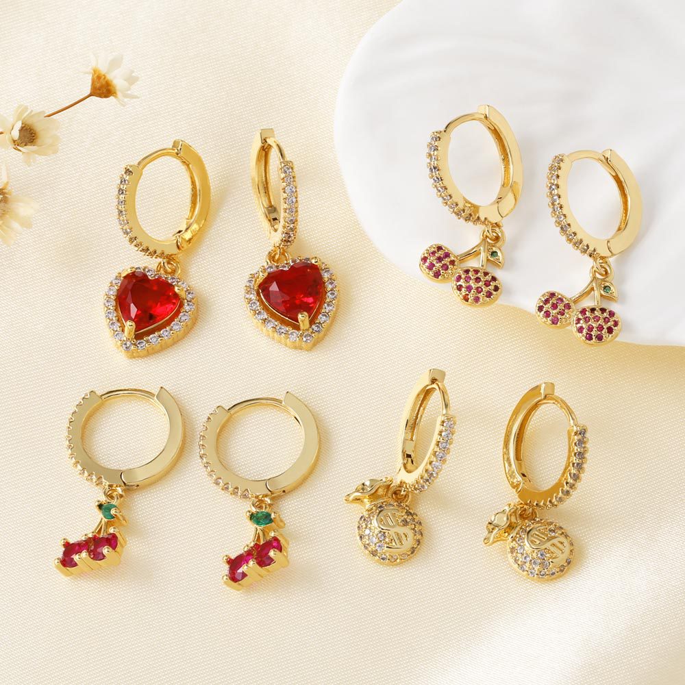 Boucles d'oreilles en laiton zircon cubique pavent, avec zircon cubique, Plaqué d'or, bijoux de mode & styles différents pour le choix & pour femme, Vendu par paire