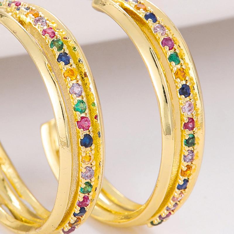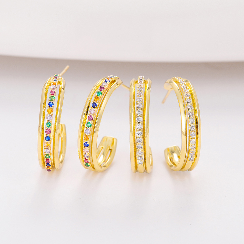 Boucles d'oreilles en laiton zircon cubique pavent, Placage de couleur d'or, pavé de micro zircon & pour femme & creux, plus de couleurs à choisir, Vendu par paire