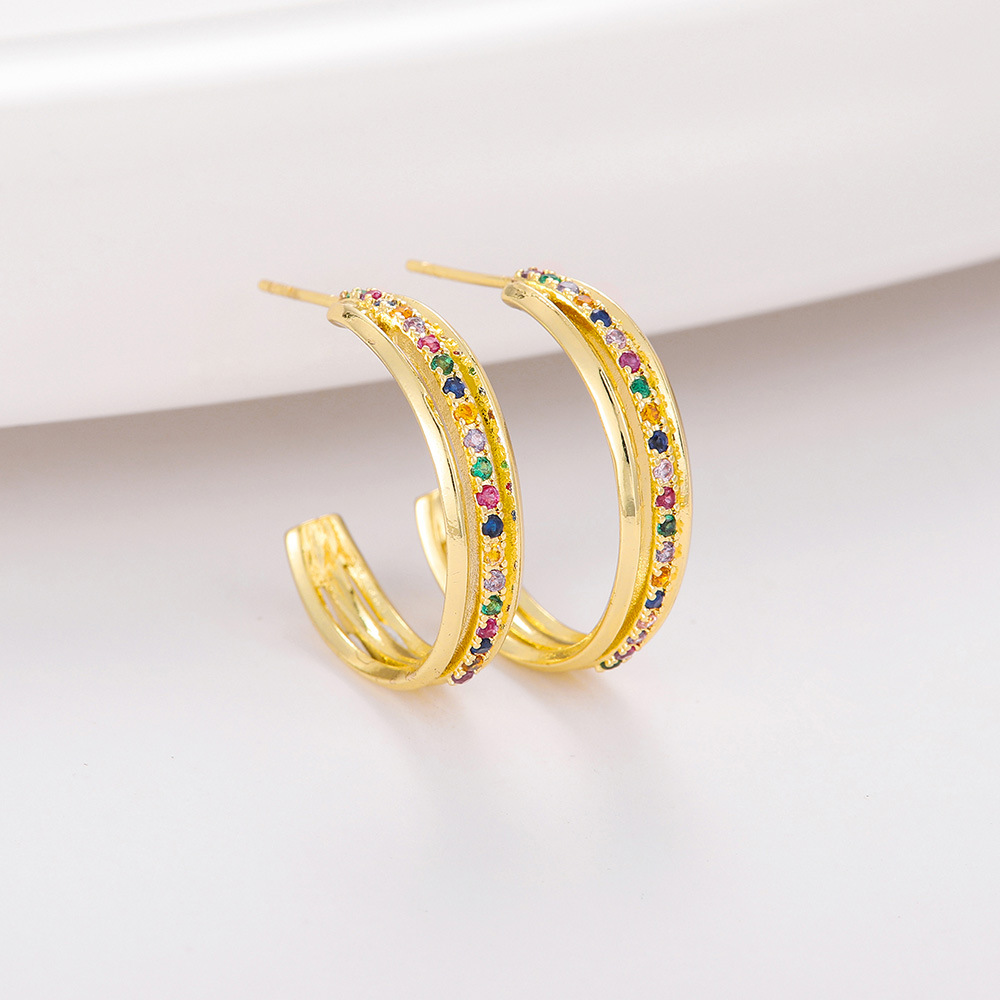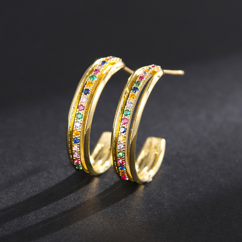 Boucles d'oreilles en laiton zircon cubique pavent, Plaqué de couleur d'or rose, pavé de micro zircon Vendu par paire