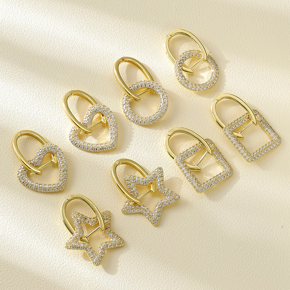 Boucles d'oreilles en laiton zircon cubique pavent, Huit Étoile, Placage, pavé de micro zircon, plus de couleurs à choisir Vendu par paire