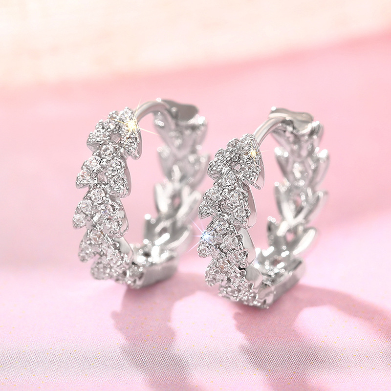 Boucles d'oreilles en laiton zircon cubique pavent, feuille, Placage, bijoux de mode & pavé de micro zircon & pour femme, Vendu par paire