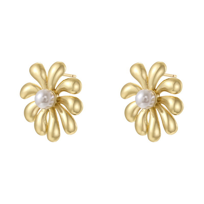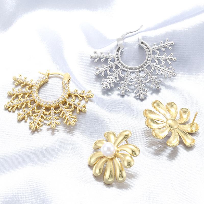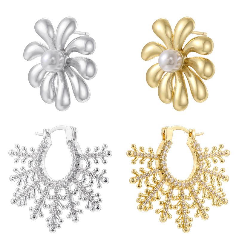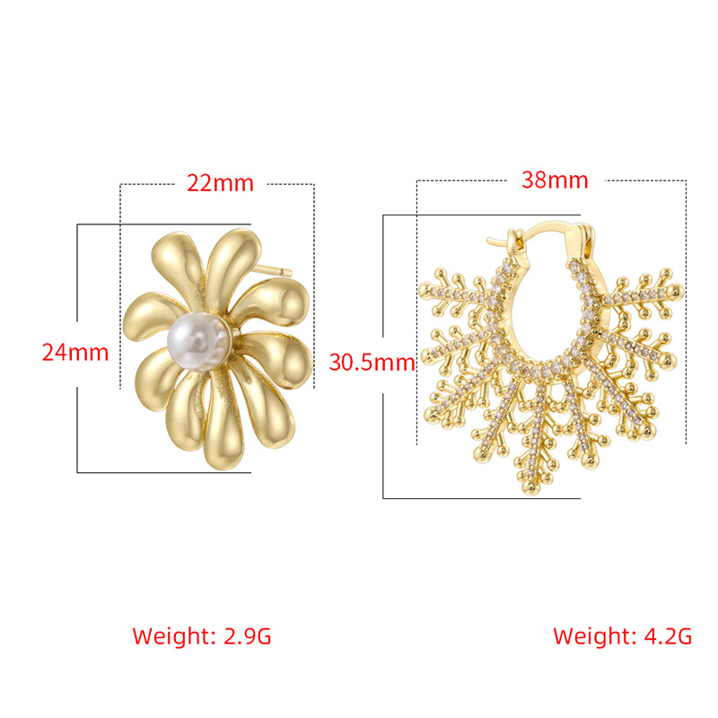 Boucles d'oreilles en laiton zircon cubique pavent, fleur, Plaqué d'or rose, pavé de micro zircon & pour femme Vendu par paire