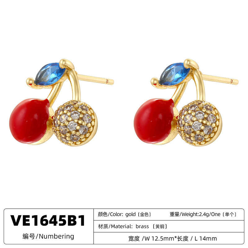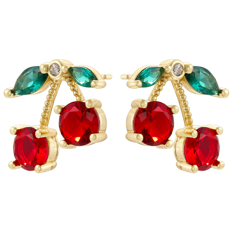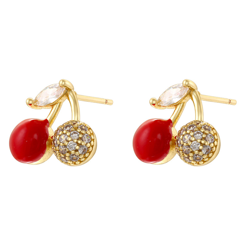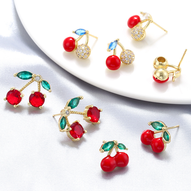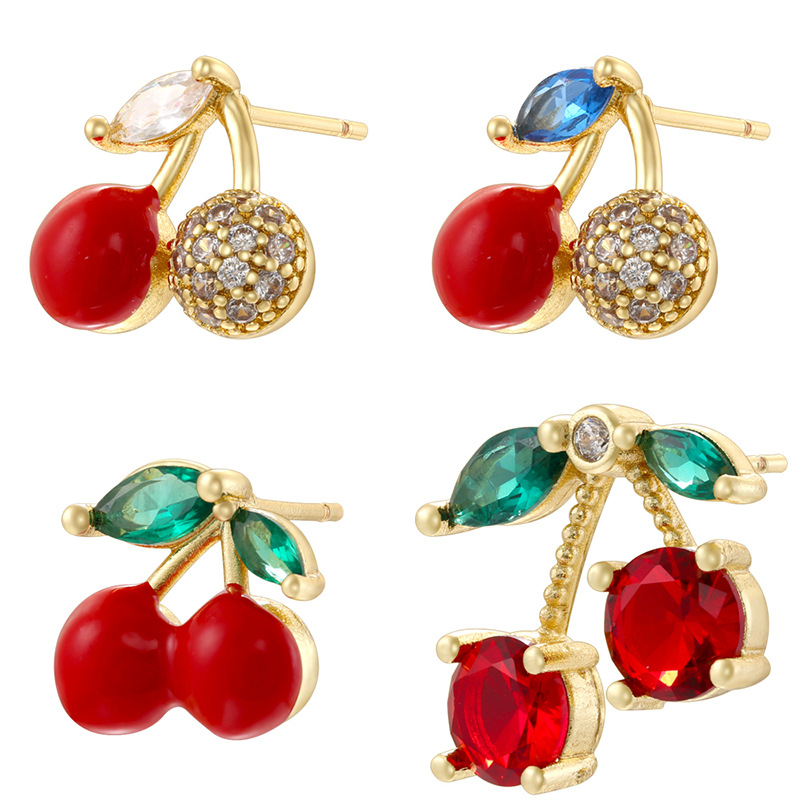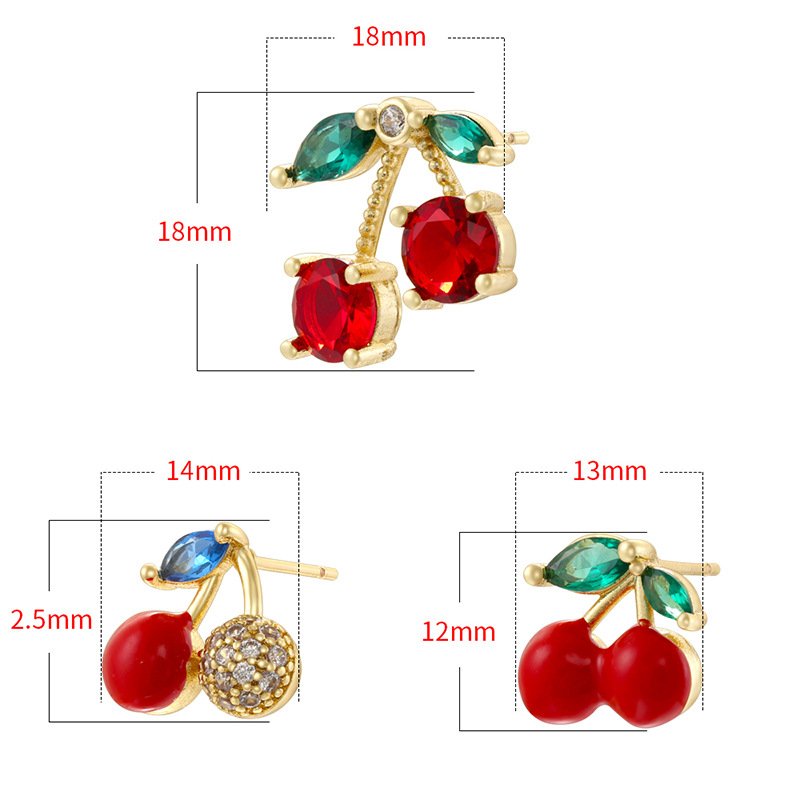 Boucles d'oreilles en laiton zircon cubique pavent, cerise, Placage de couleur d'or, styles différents pour le choix & pavé de micro zircon & pour femme & émail, plus de couleurs à choisir, Vendu par paire