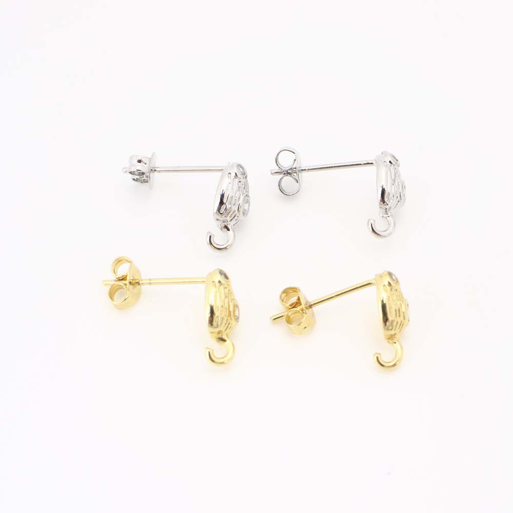 Boucles d'oreilles en laiton zircon cubique pavent, Plaqué de couleur d'or rose, pavé de micro zircon Vendu par paire