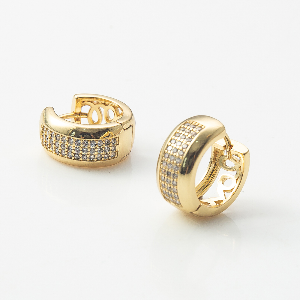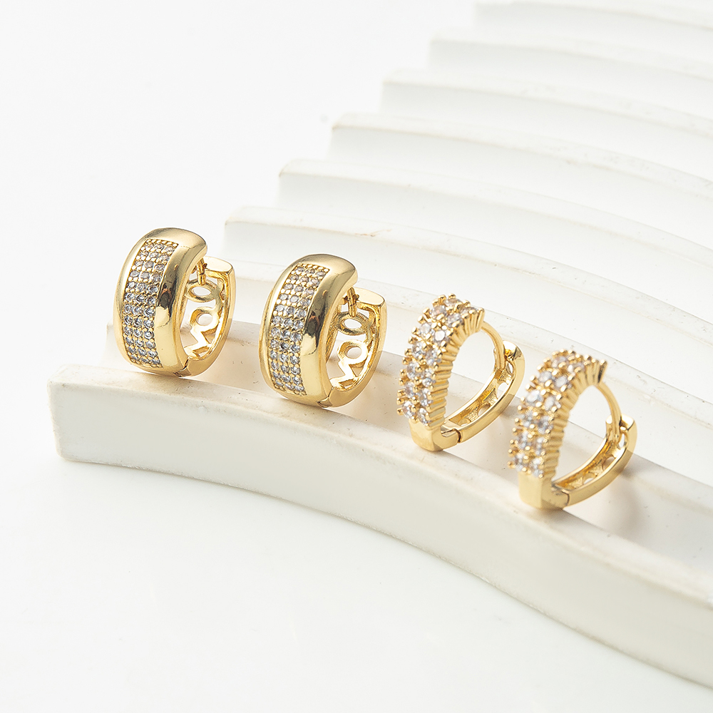 Boucles d'oreilles en laiton zircon cubique pavent, Plaqué de couleur d'or rose, pavé de micro zircon Vendu par paire