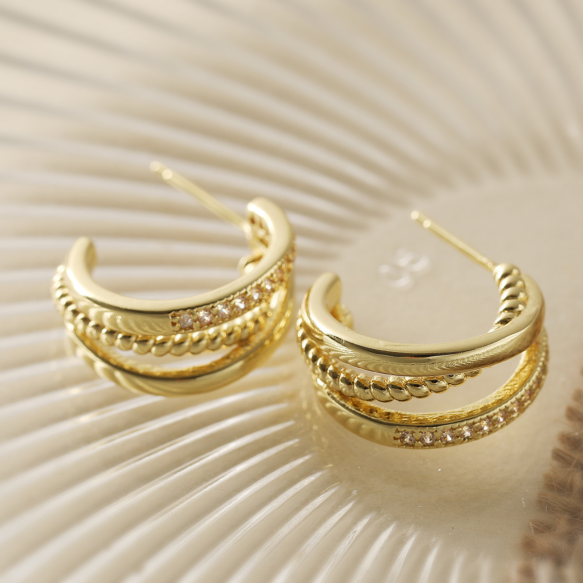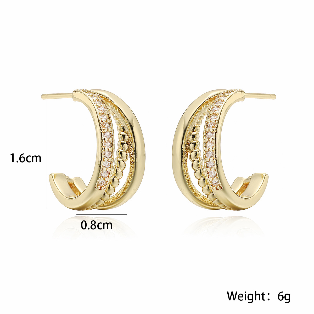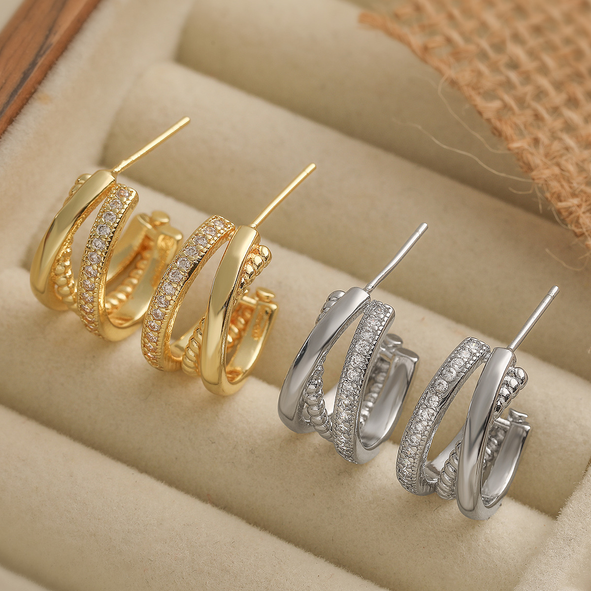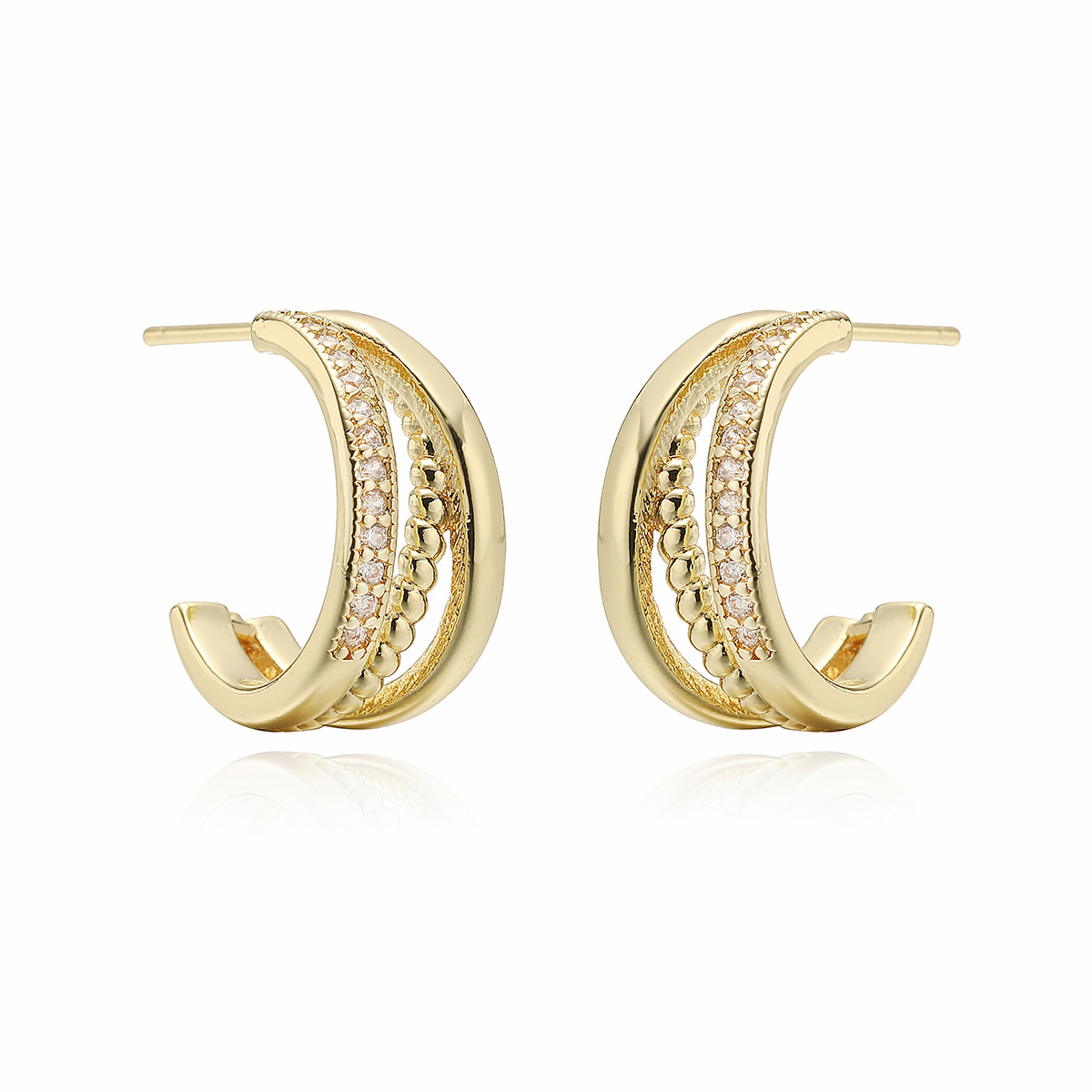 Boucles d'oreilles en laiton zircon cubique pavent, Plaqué de couleur d'or rose, pavé de micro zircon Vendu par paire