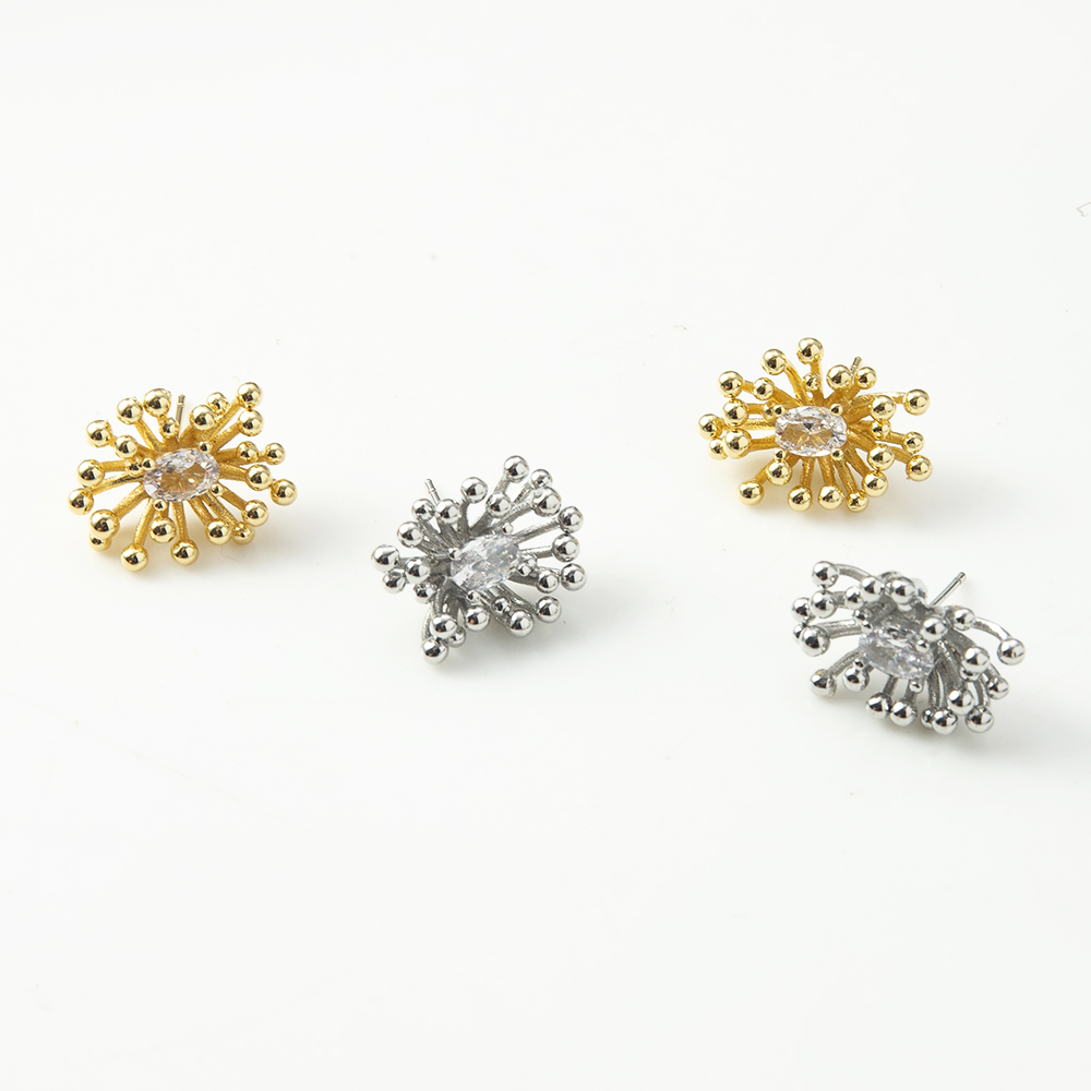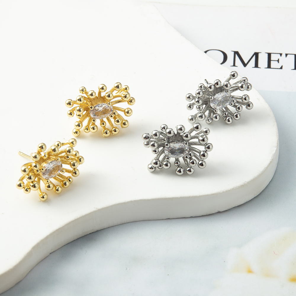 Boucles d'oreilles en laiton zircon cubique pavent, fleur, Plaqué d'or rose, pavé de micro zircon & pour femme Vendu par paire
