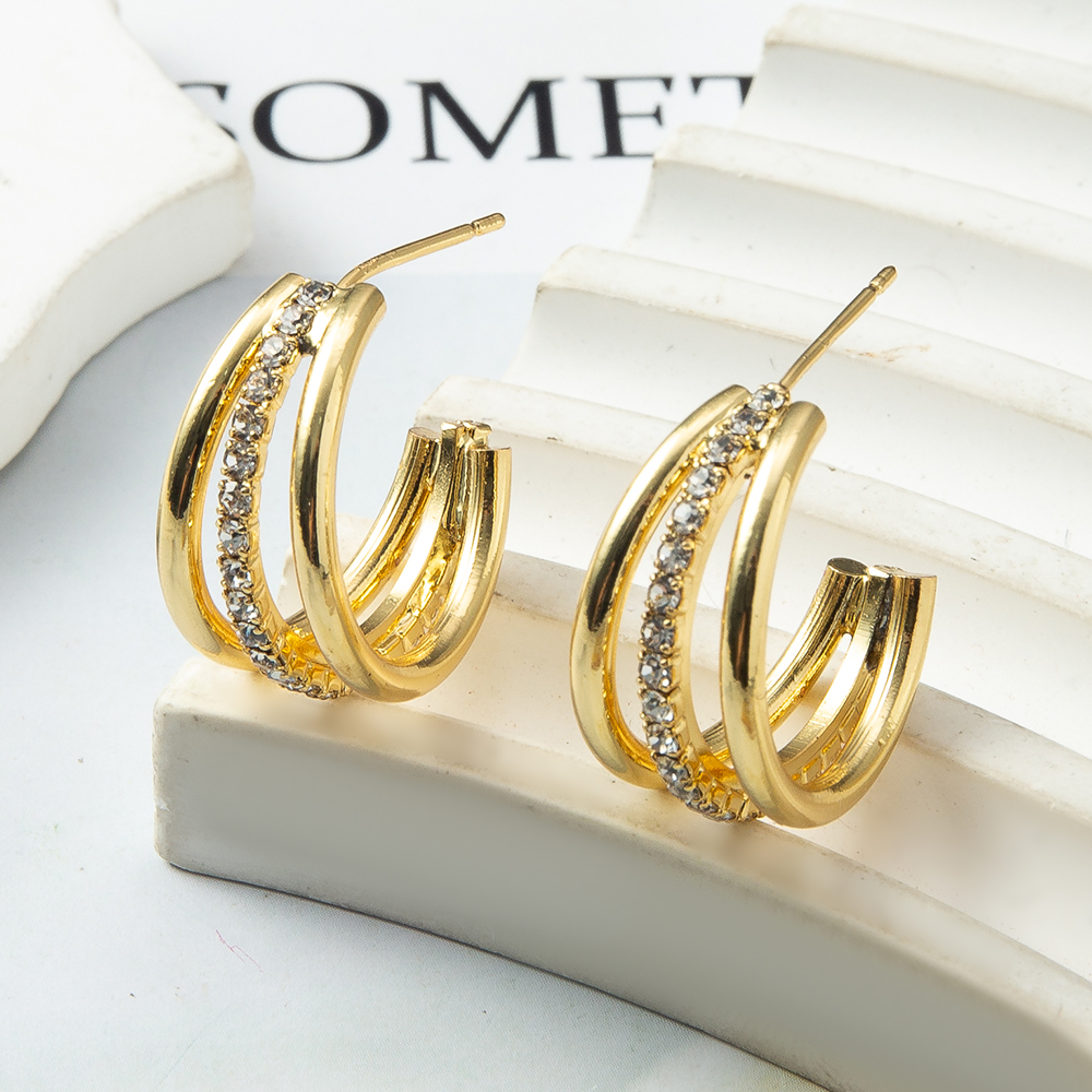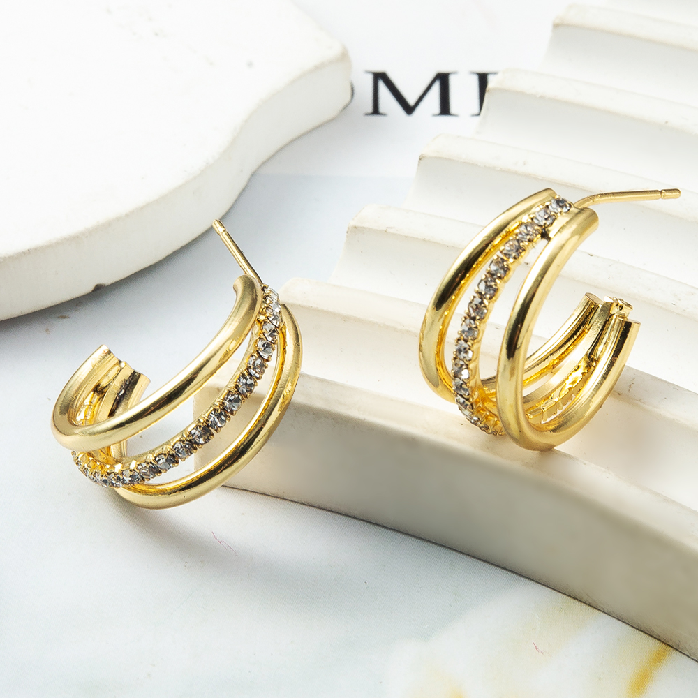 Boucles d'oreilles en laiton zircon cubique pavent, Plaqué de couleur d'or rose, pavé de micro zircon Vendu par paire