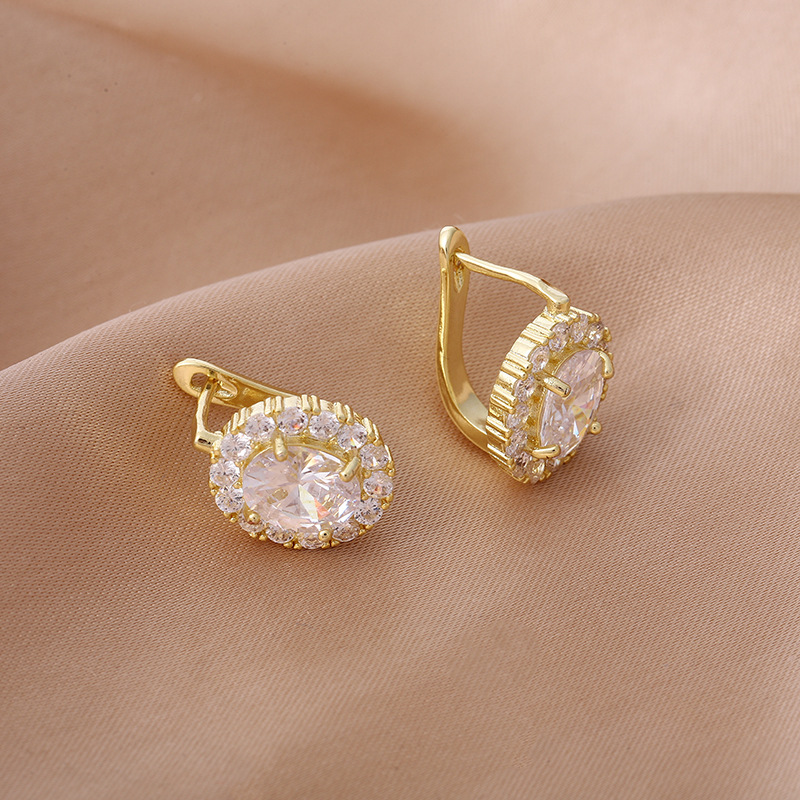 Boucles d'oreilles en laiton zircon cubique pavent, Placage de couleur d'or, DIY & pavé de micro zircon, doré, Vendu par paire