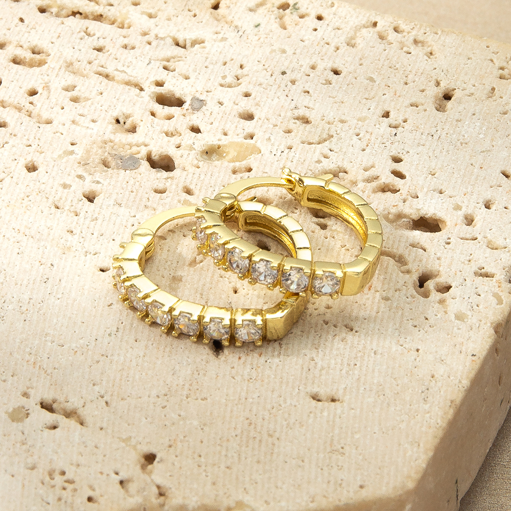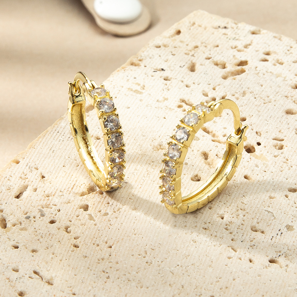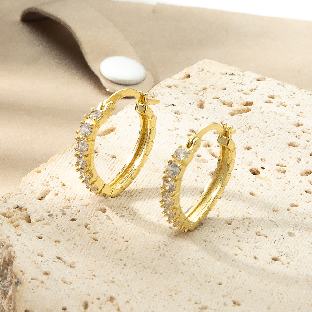 Boucles d'oreilles en laiton zircon cubique pavent, Plaqué de couleur d'or rose, pavé de micro zircon Vendu par paire
