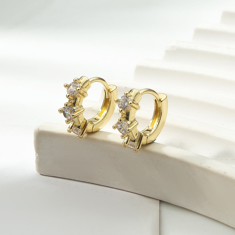 Boucles d'oreilles en laiton zircon cubique pavent, Plaqué de couleur d'or rose, pavé de micro zircon Vendu par paire
