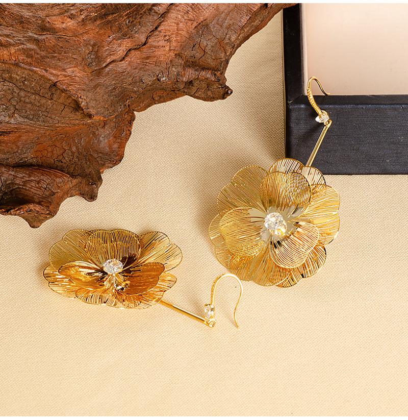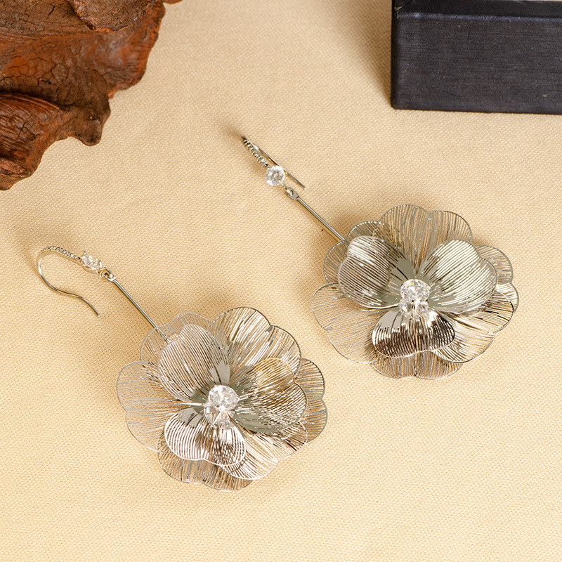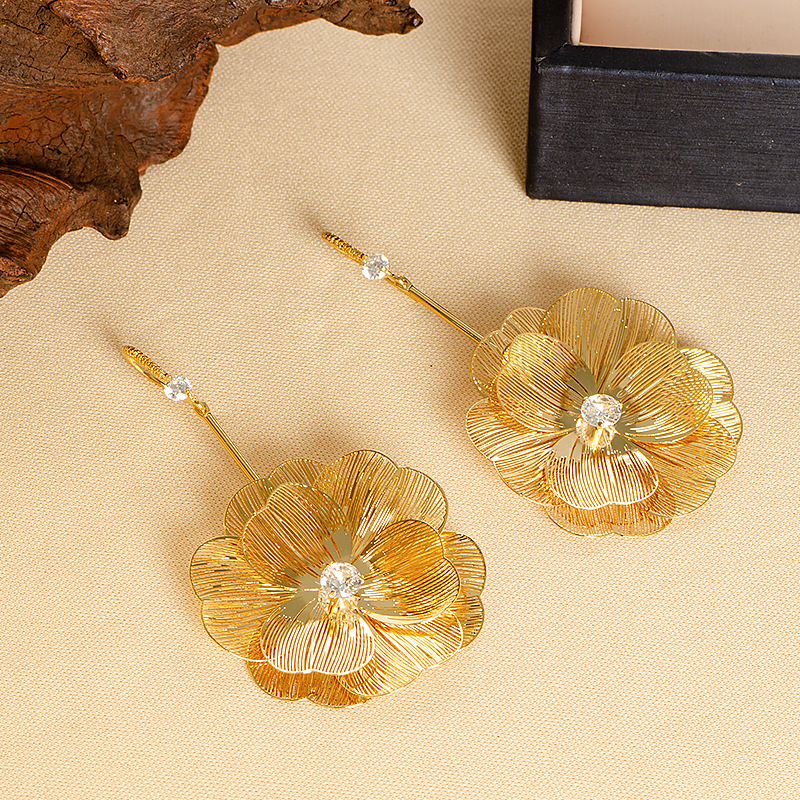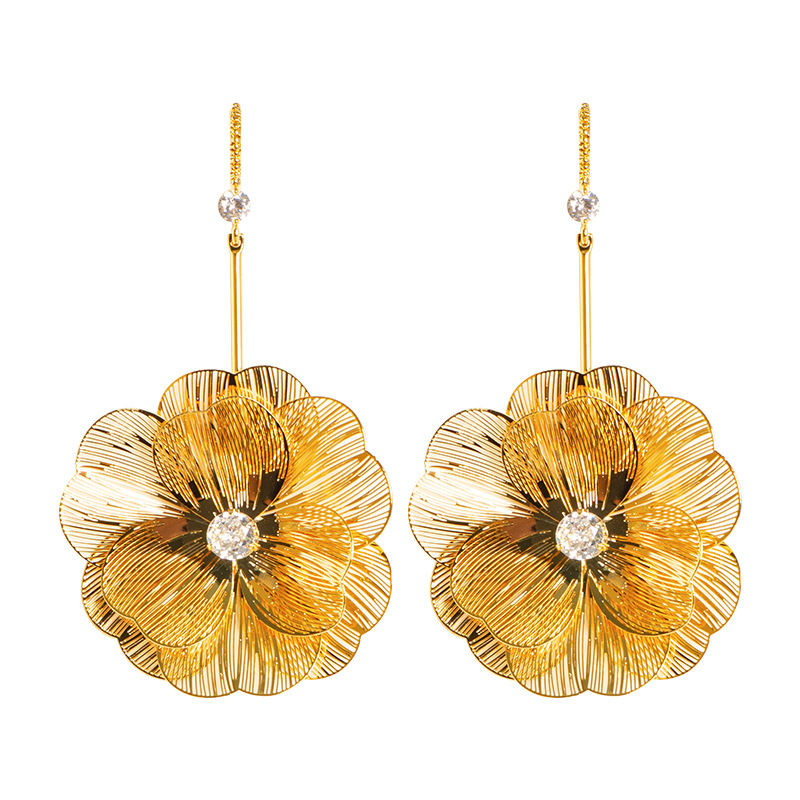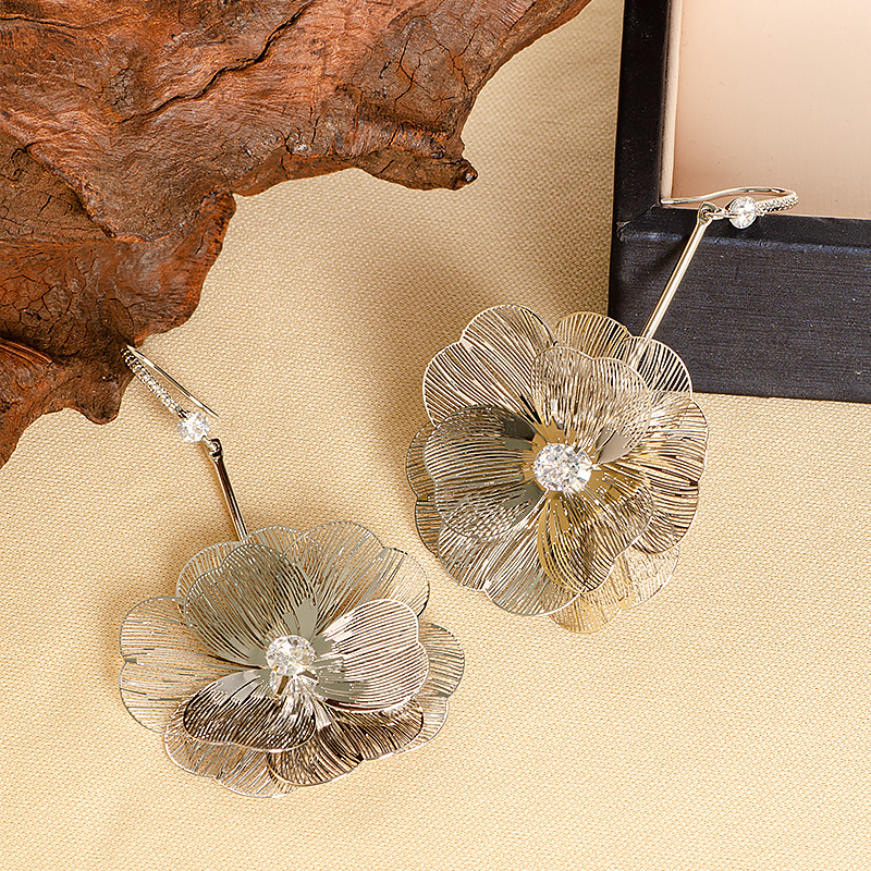Boucles d'oreilles en laiton zircon cubique, fleur, Placage, bijoux de mode & pavé de micro zircon, plus de couleurs à choisir, 42x80mm, Vendu par paire