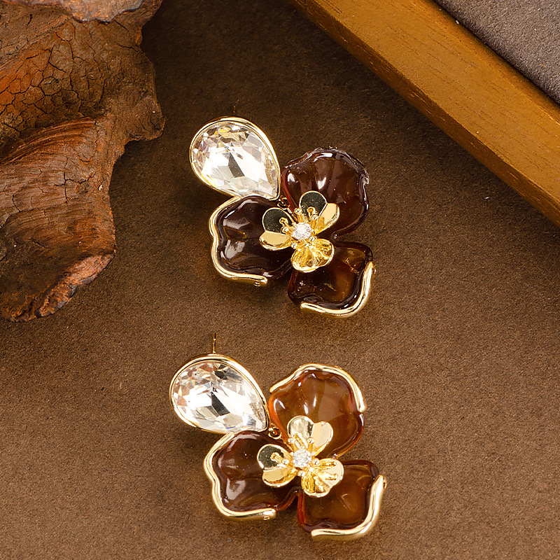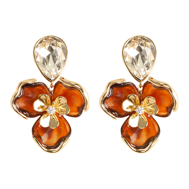 Boucles d'oreilles en laiton zircon cubique, avec résine, Placage de couleur d'or, bijoux de mode & pavé de micro zircon, doré, 26x36mm, Vendu par paire