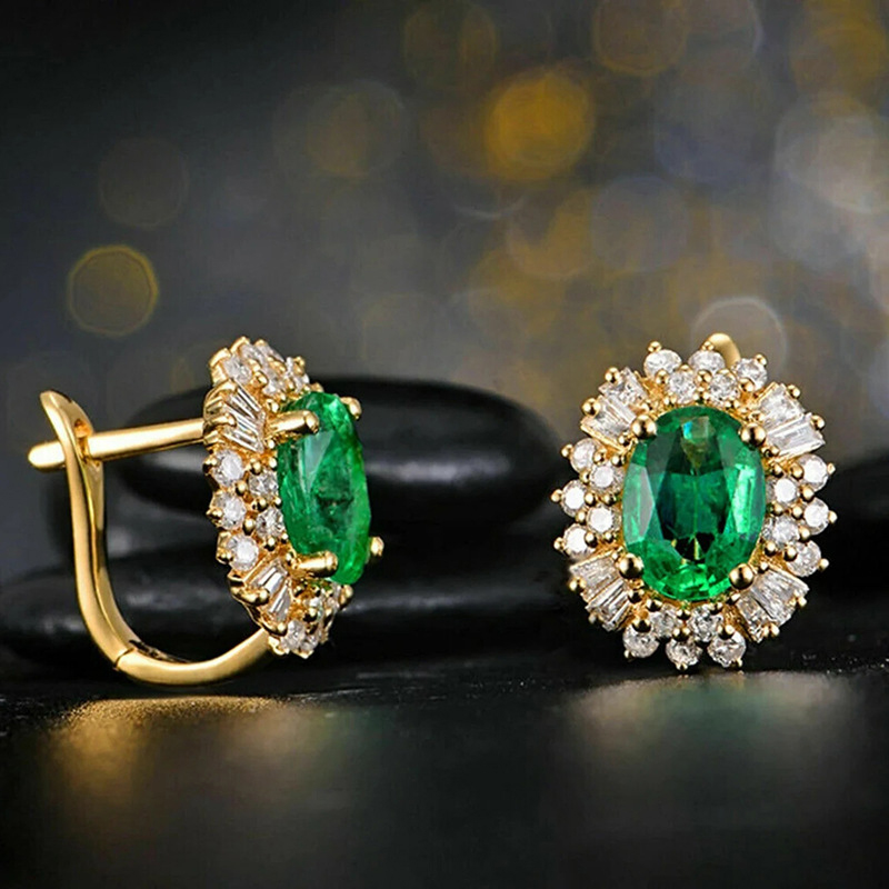 Boucles d'oreilles en laiton zircon cubique, avec zircon cubique, Placage de couleur d'or, bijoux de mode & pour femme, vert, Vendu par paire