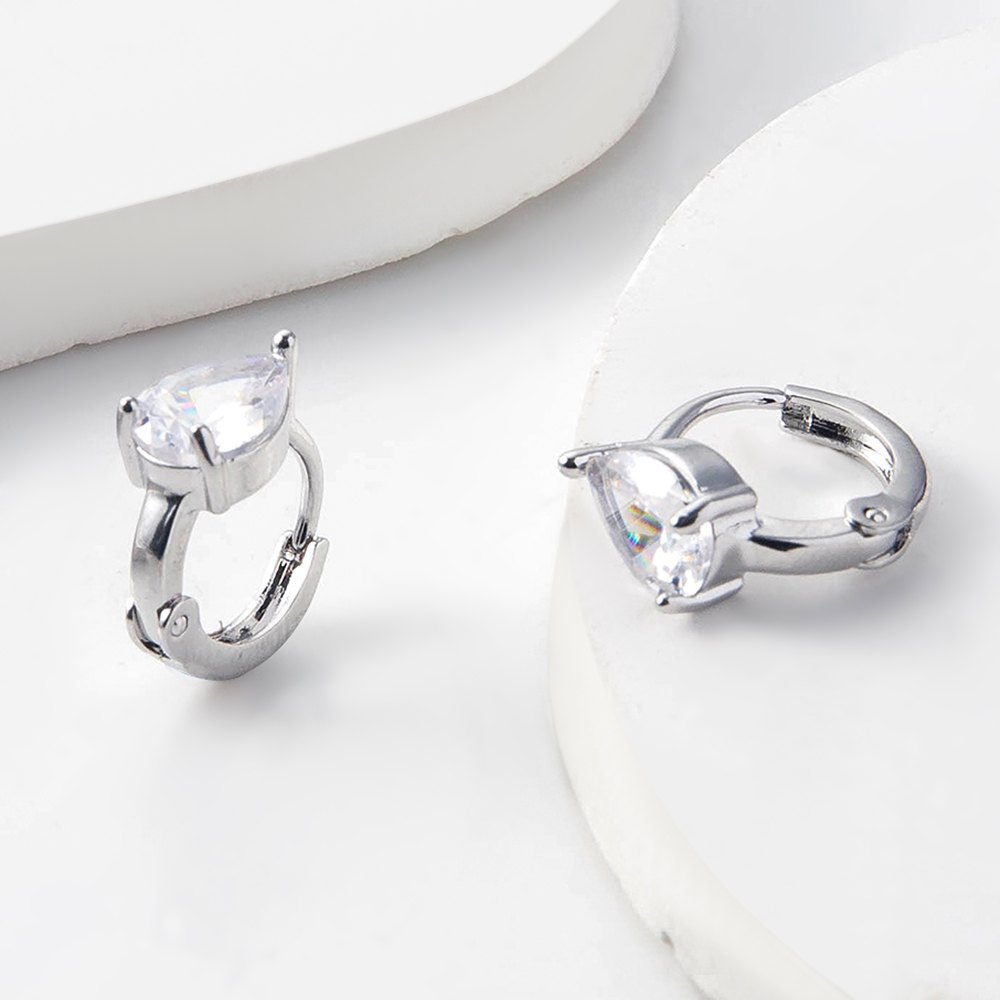 Boucles d'oreilles en laiton zircon cubique, Plaqué de platine, avec zircone cubique Vendu par paire