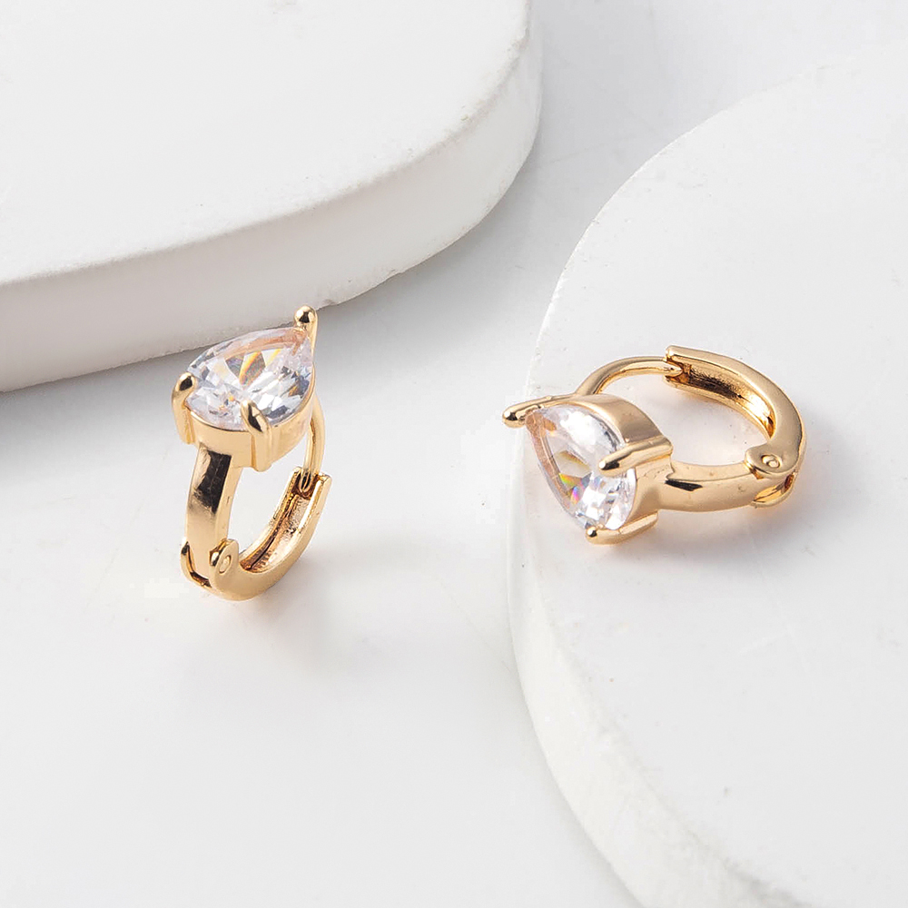 Boucles d'oreilles en laiton zircon cubique, larme, Placage de couleur d'or, avec zircone cubique Vendu par paire