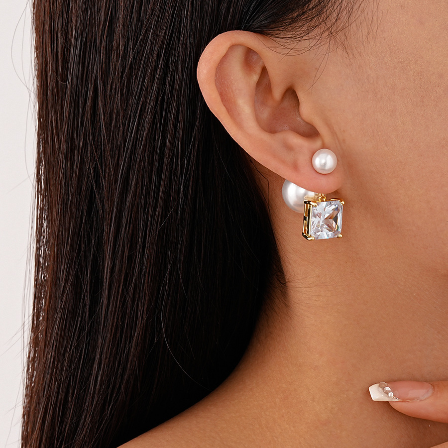 Boucles d'oreilles en laiton zircon cubique, Plaqué de platine, avec les perles en verre & avec zircone cubique Vendu par paire