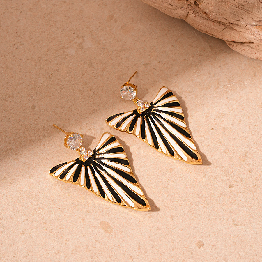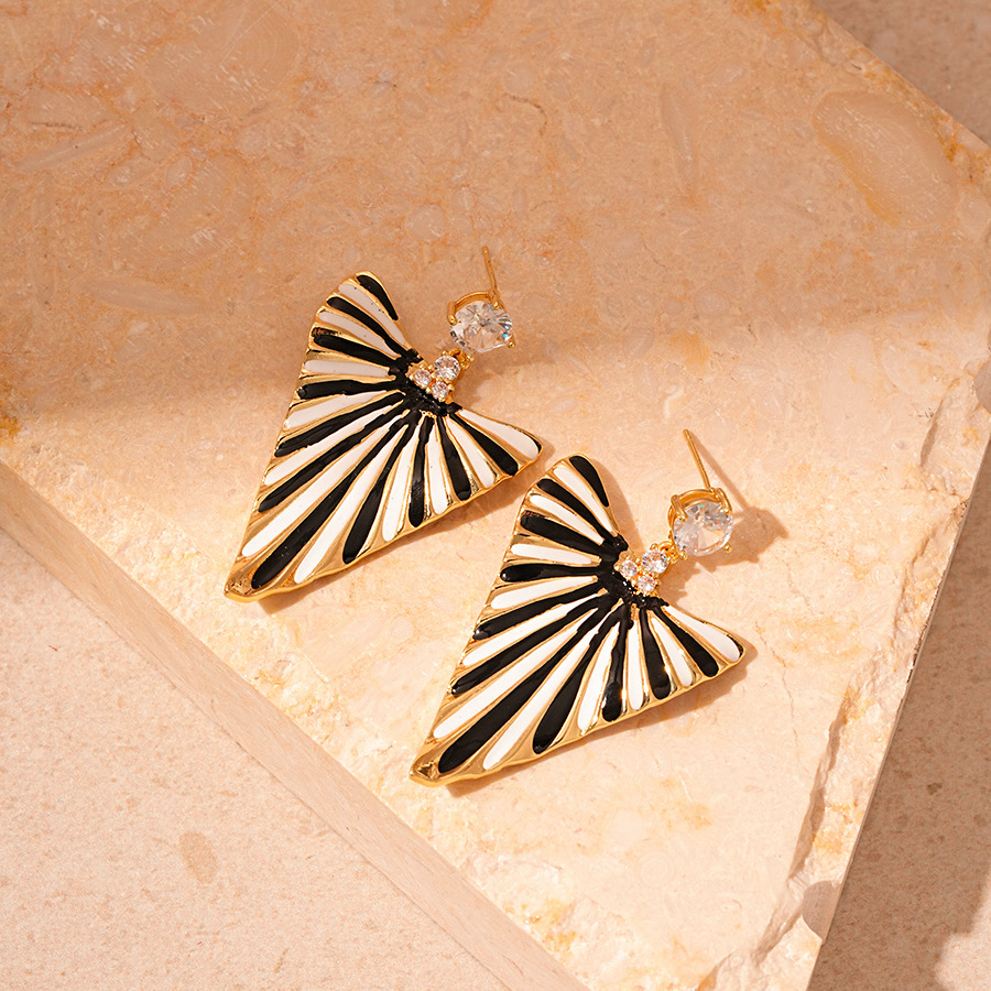 Boucles d'oreilles en laiton zircon cubique, avec zircon cubique, triangle, bijoux de mode & pour femme & émail, doré, 51x33mm, Vendu par paire